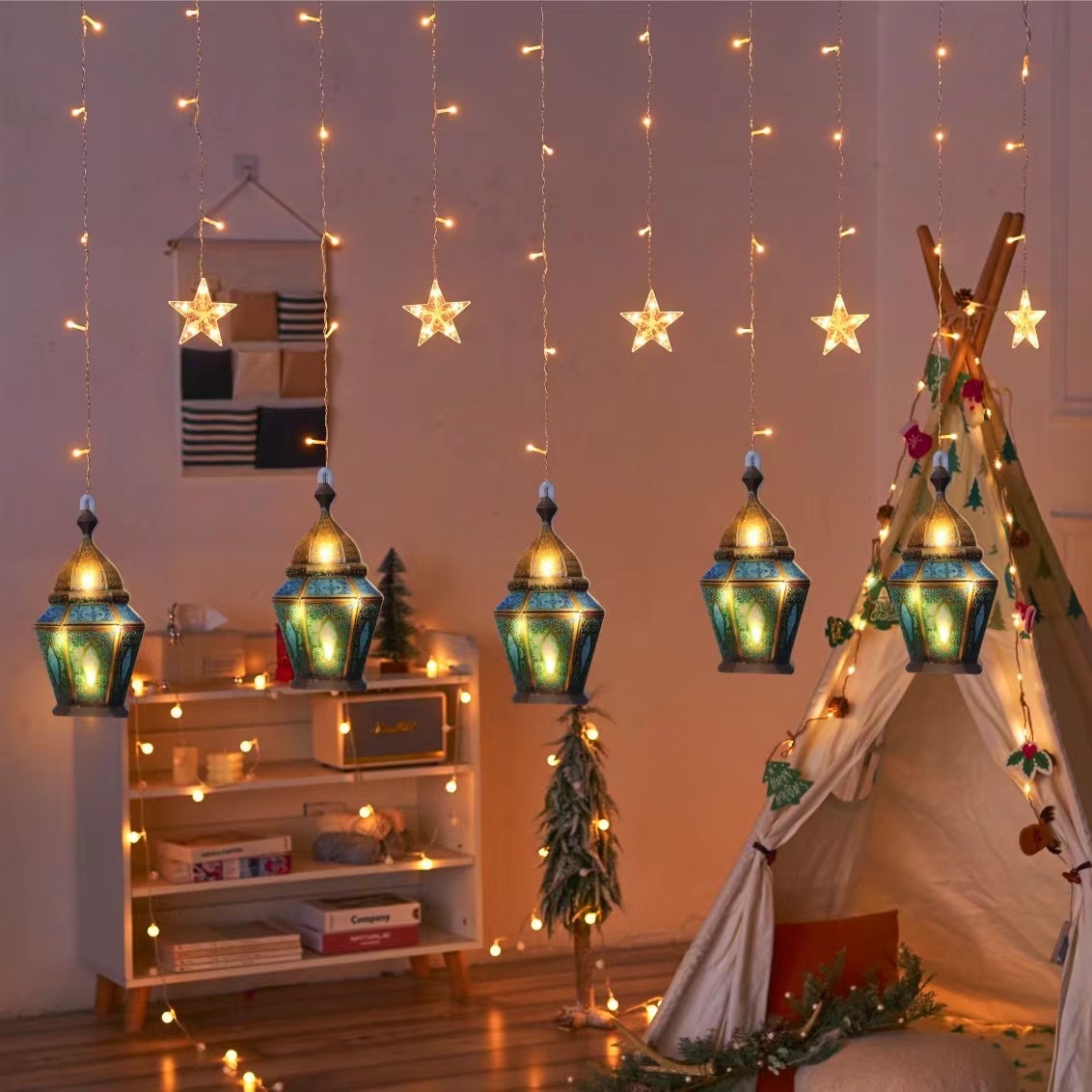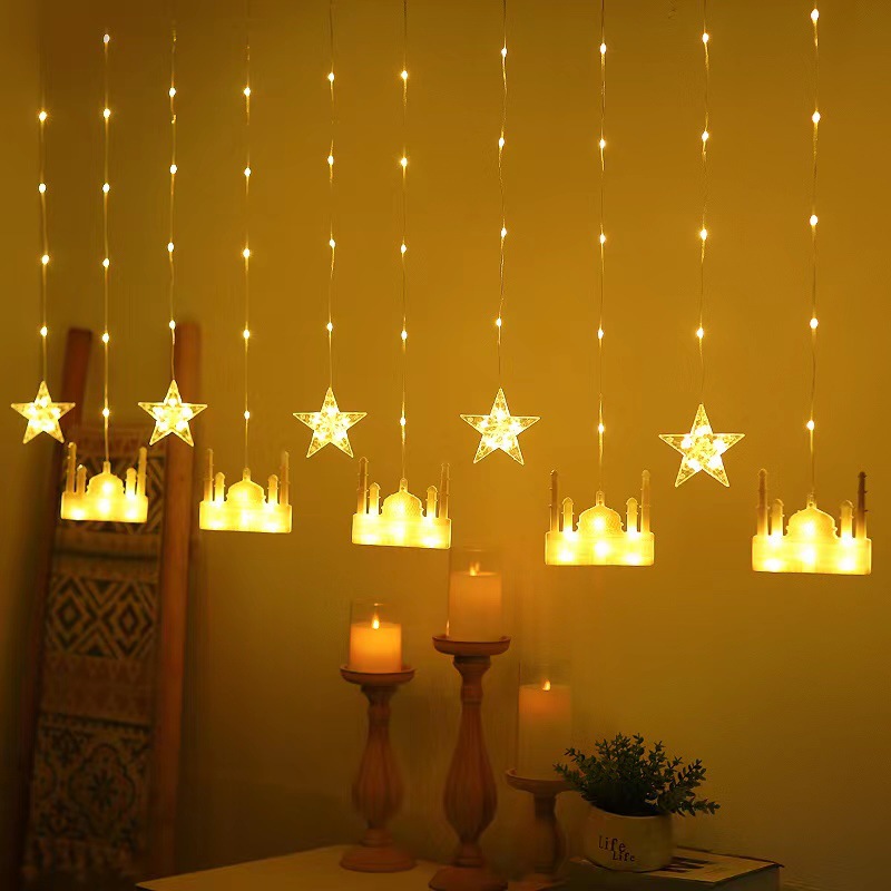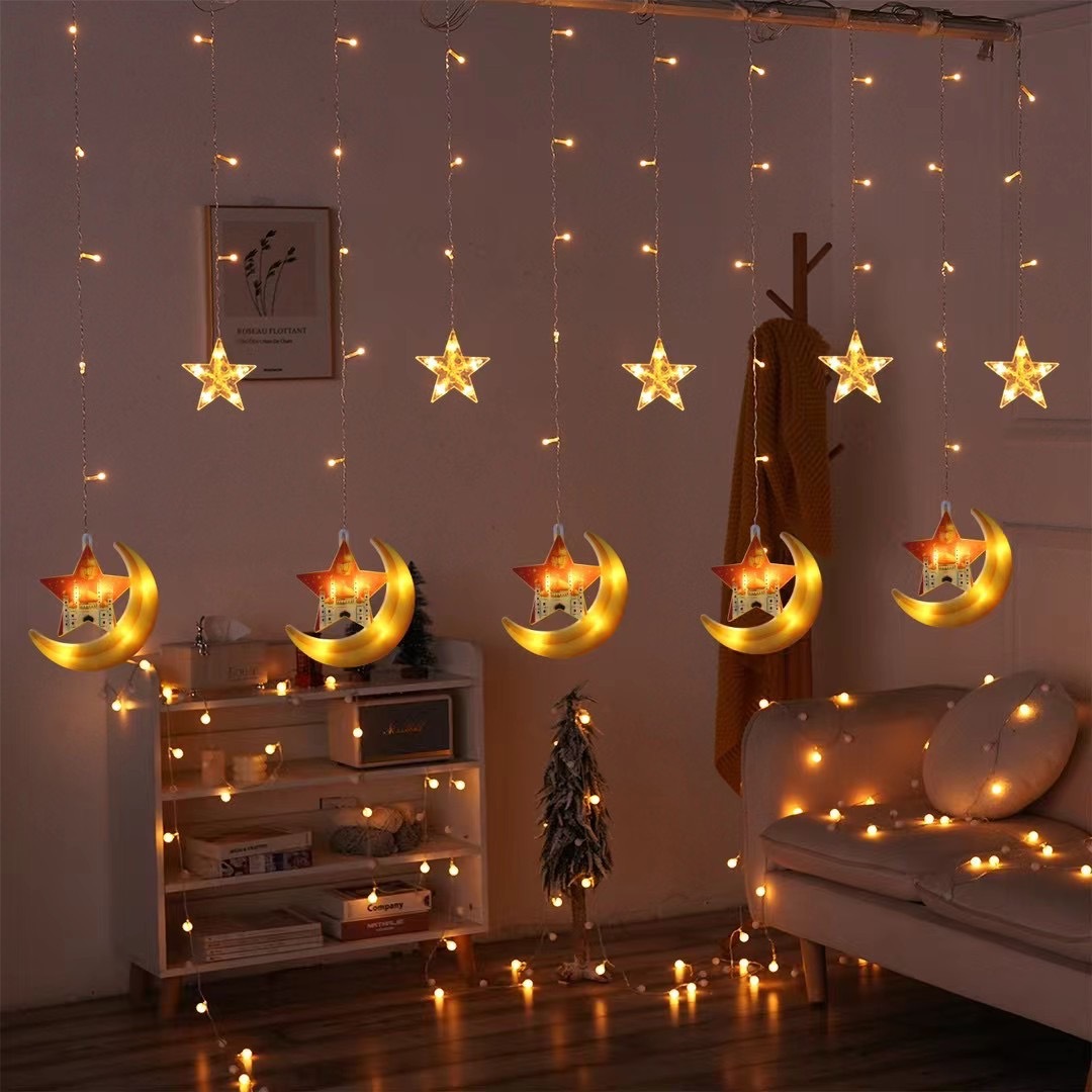 국경을 넘는 새로운 스타일의 별과 달 성 커튼 조명, 사랑스러운 소녀 방 천사 LED 장식 조명 스트링