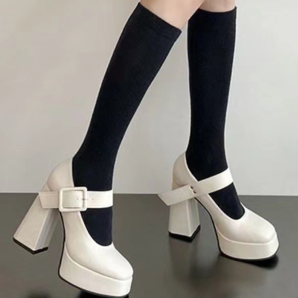빈티지 메리 제인 여성 신발 새로운 2022 프렌치 스퀘어 토 작은 가죽 신발 봄과 가을 청키 힐 우아한 청키 힐 하이힐 싱글 레이어 신발스토어 가기