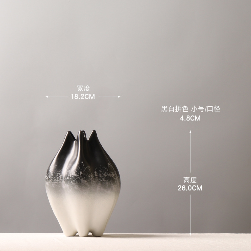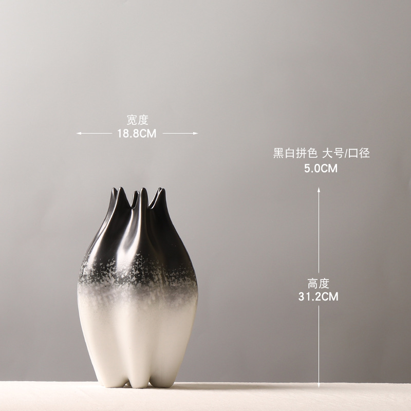 발 발톱 입 꽃 장식 모델 룸 꽃 장식이있는 새로운 중국 크리 에이 티브 흑백 색상 블록 세라믹 꽃병스토어 가기