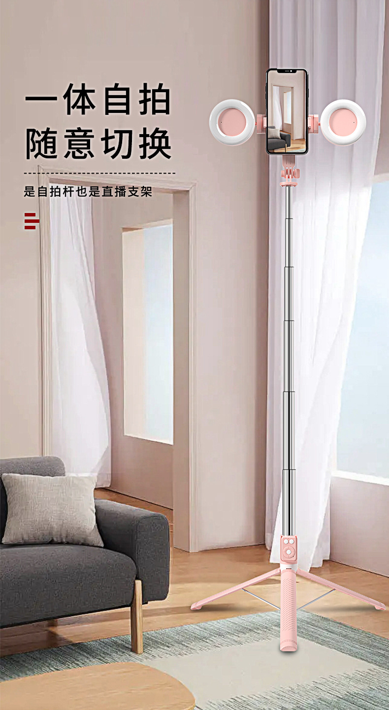 • 1.7m 핑크 듀얼 필 라이트 + Douyin Kuaishou 원격 제어 BT12 촬영 가능