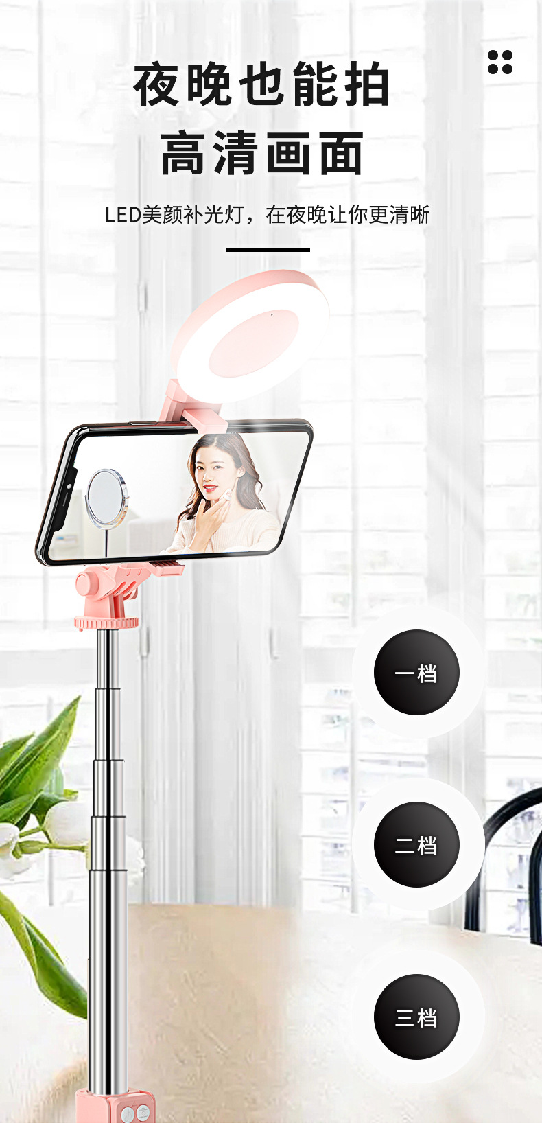 • 단일 필 라이트 + Douyin Kuaishou 원격 제어 BT12를 촬영할 수 있는 1.7m 핑크