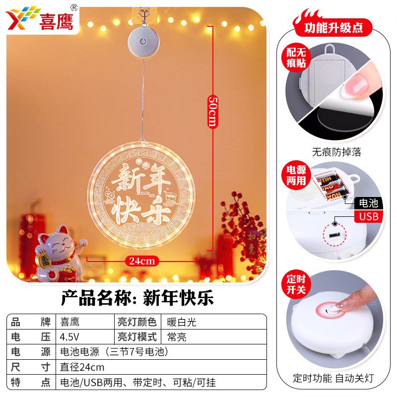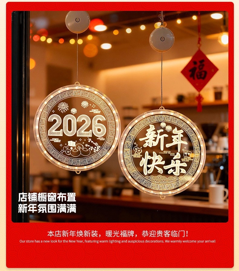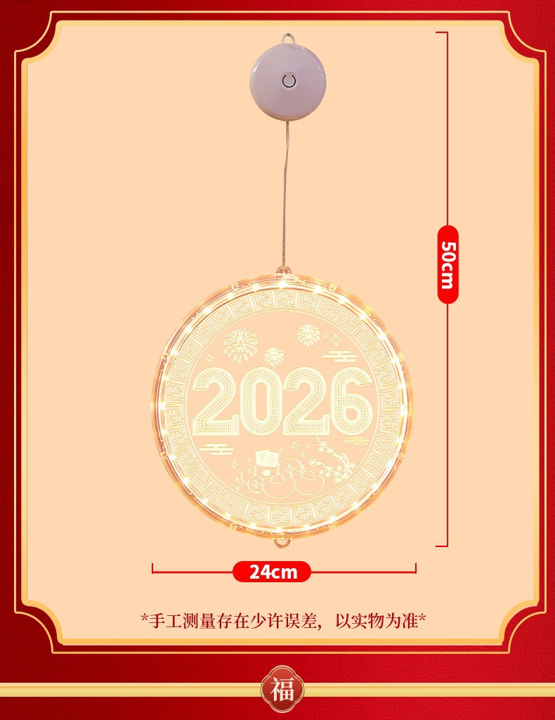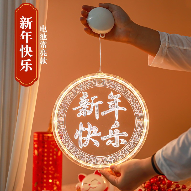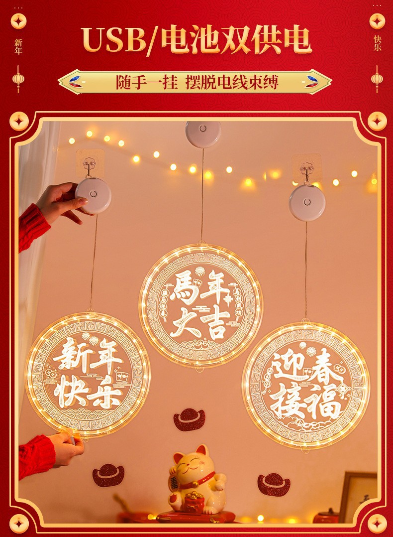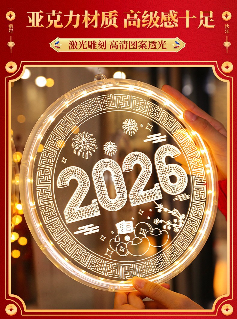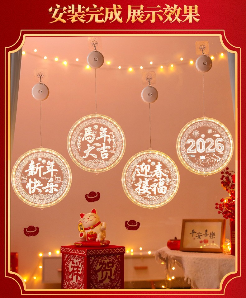2025 봄 축제 LED 조명 창 분위기 장식 빛나는 행운의 단어 년 뱀 LED 아크릴 흡입 컵 교수형 조명 도매