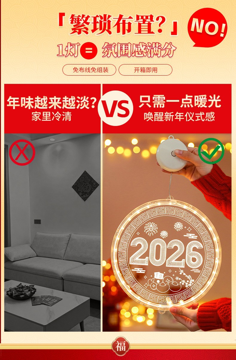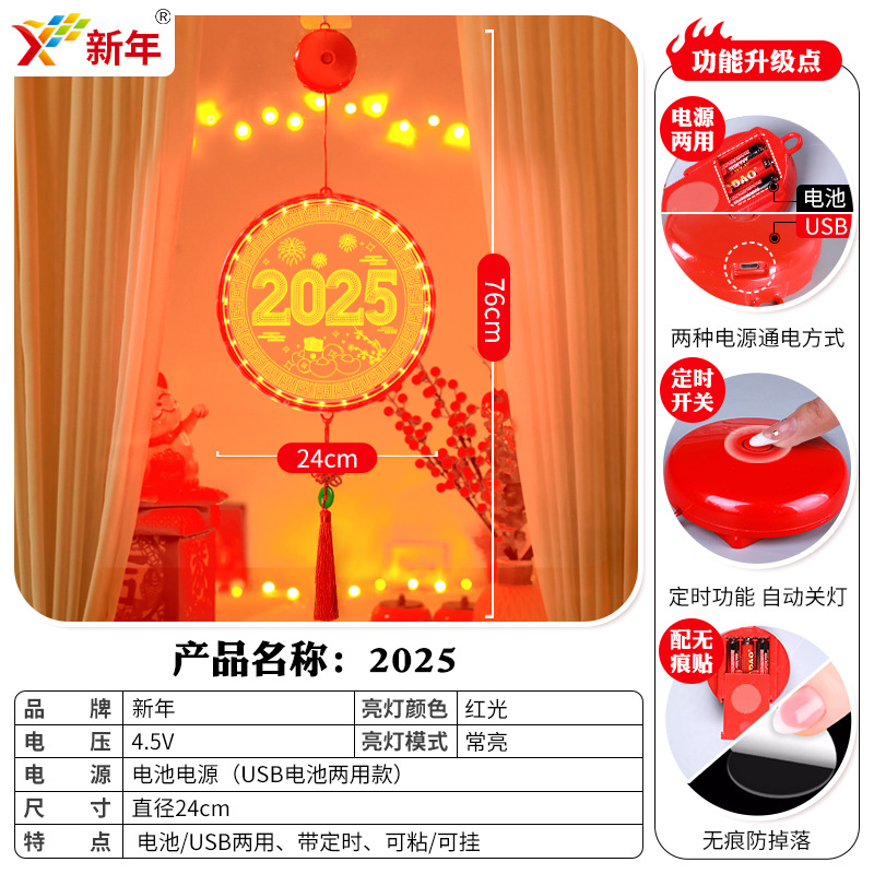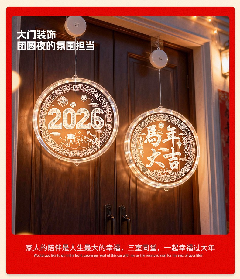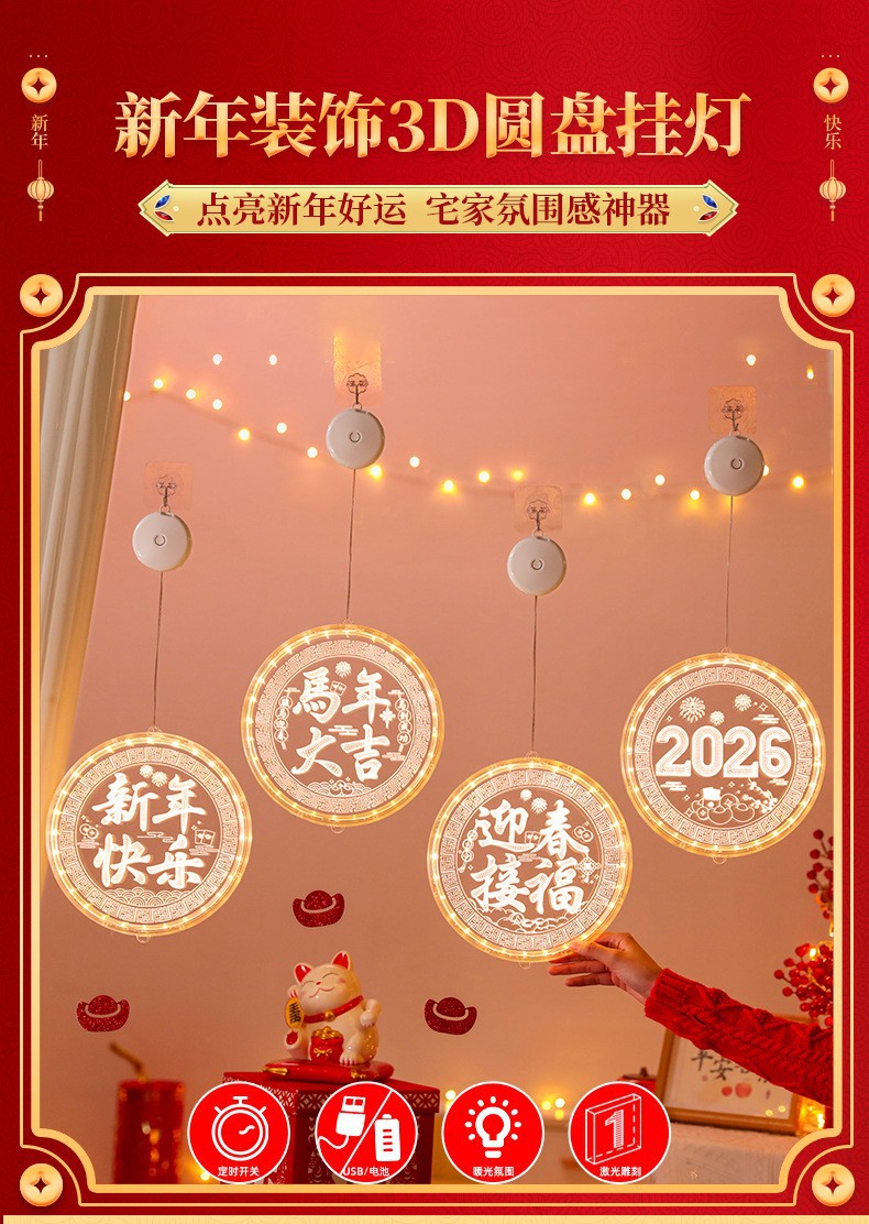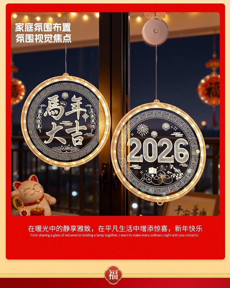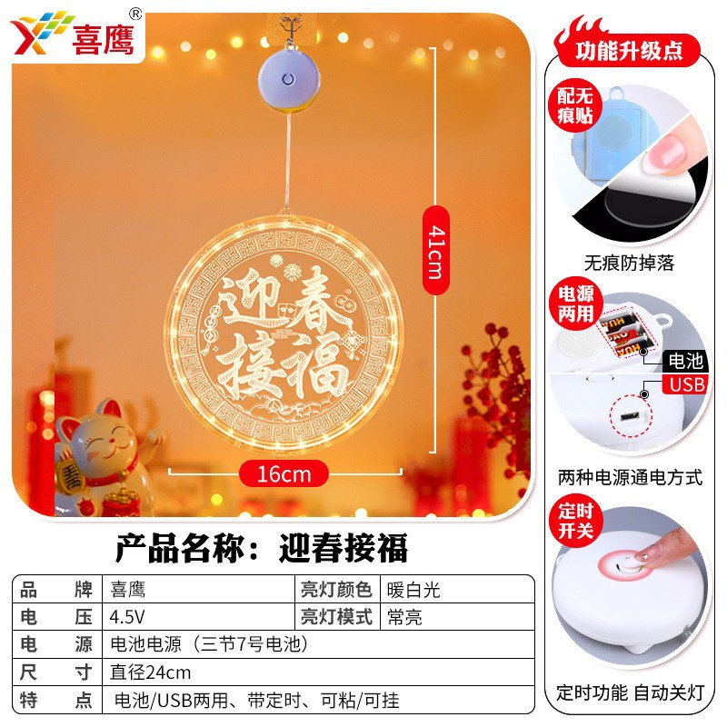 2025 봄 축제 LED 조명 창 분위기 장식 빛나는 행운의 단어 년 뱀 LED 아크릴 흡입 컵 교수형 조명 도매