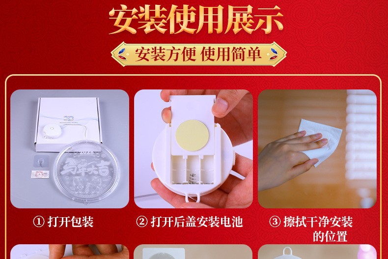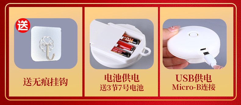 • [배터리 모델은 항상 켜져 있음] 입체적인 축복 문자 - 빨간색