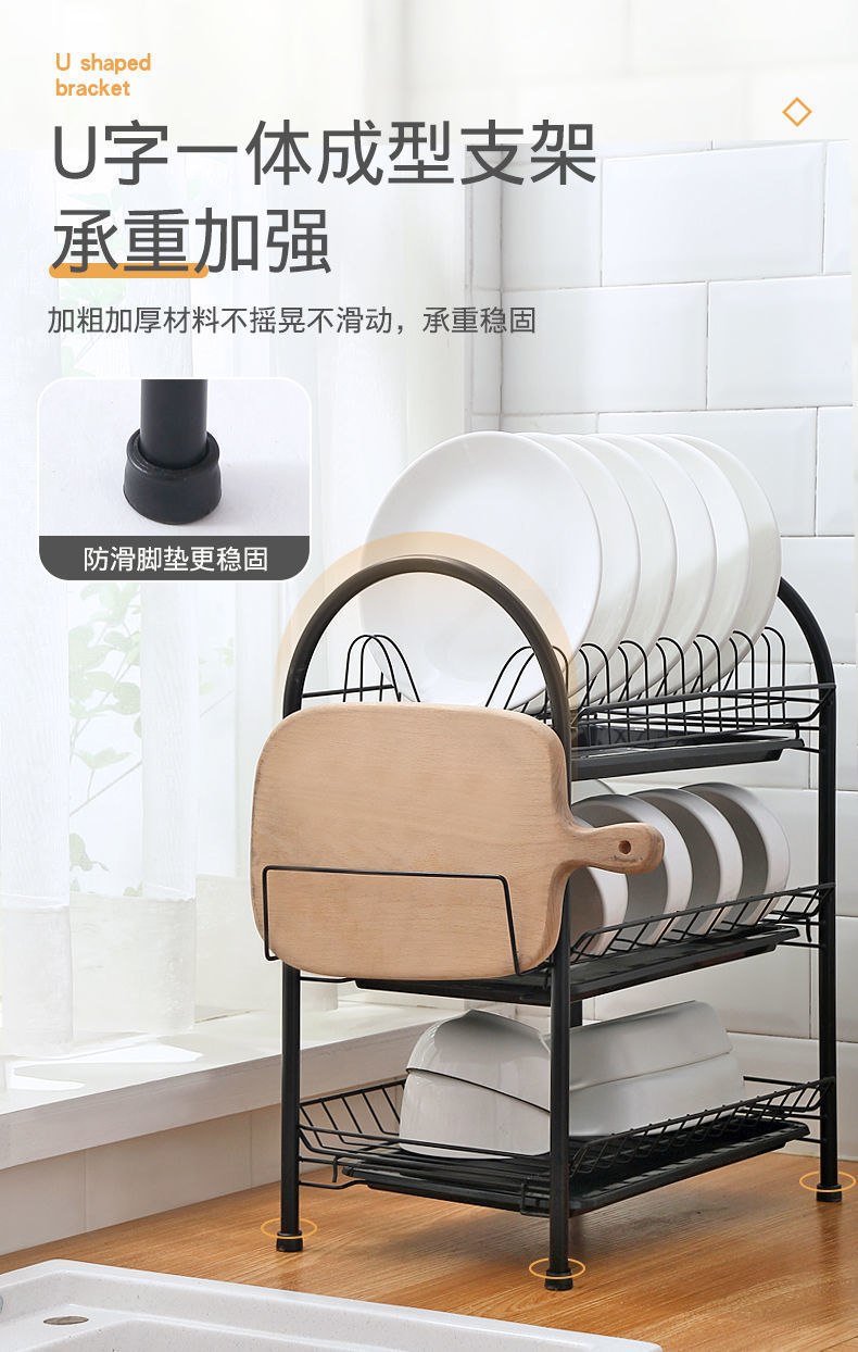 다용도 수납 선반, 배수 트레이 선반, 주방 선반, 다층 바닥형 찬장, 접시 선반, 수납 및 세척용, 해외 도매스토어 가기