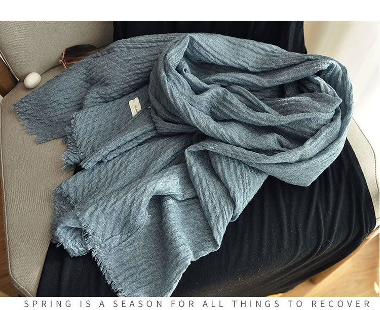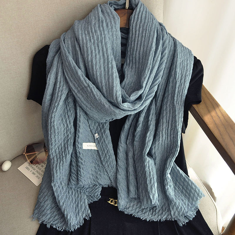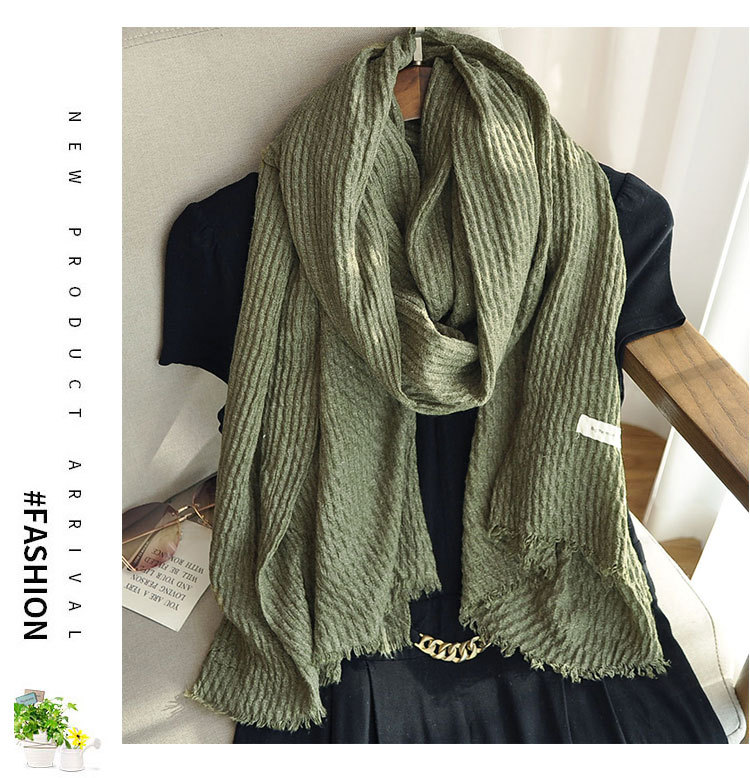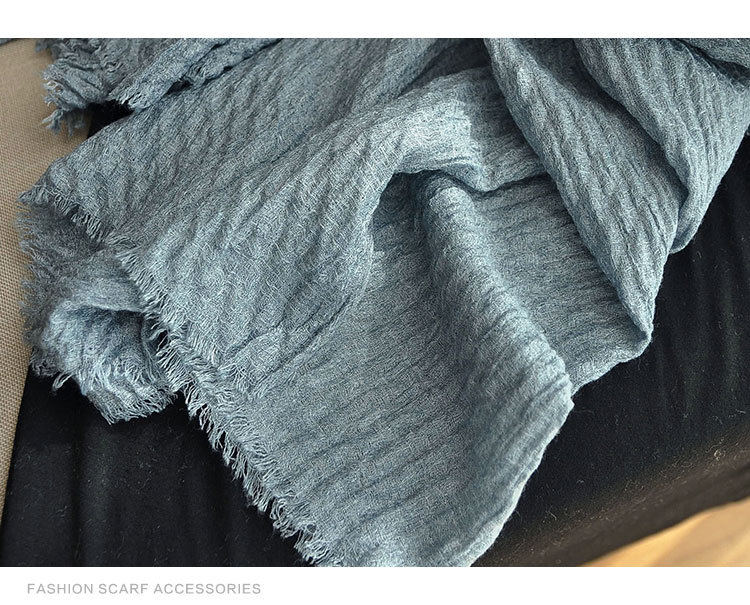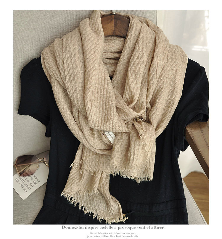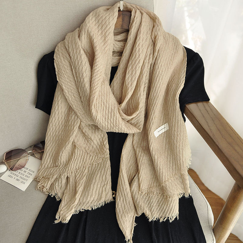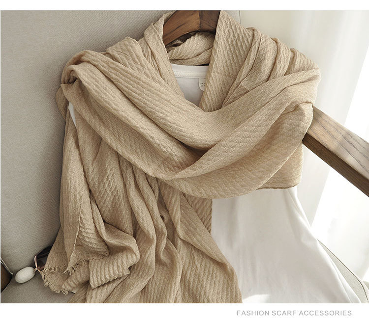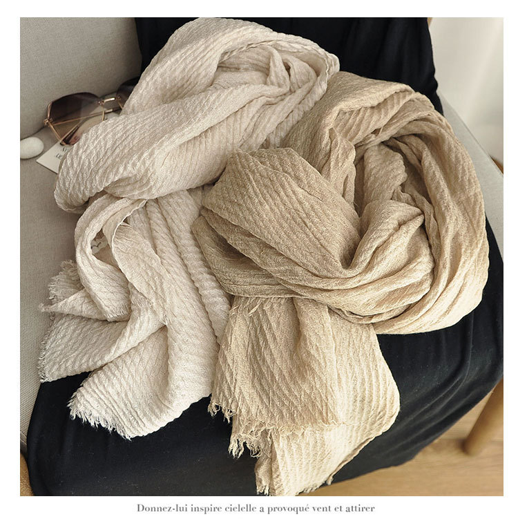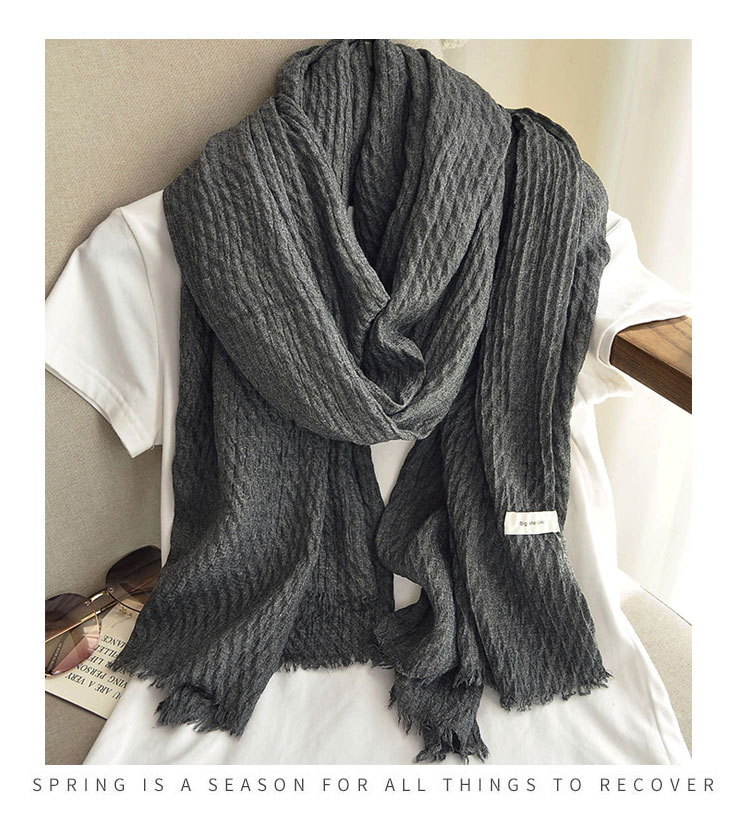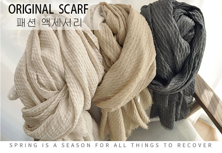 여성을위한 부드러운 일반 물결 무늬 면화와 린넨 스카프 가을, 겨울 얇은 문학 스타일 복고풍 스카프 실크 스카프 목도리 단색스토어 가기
