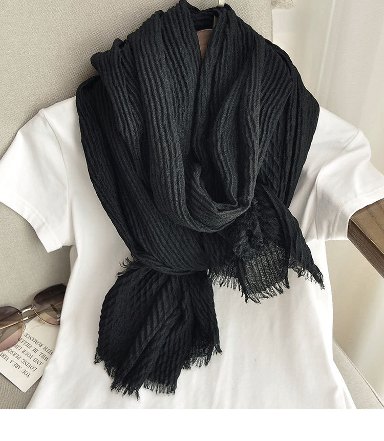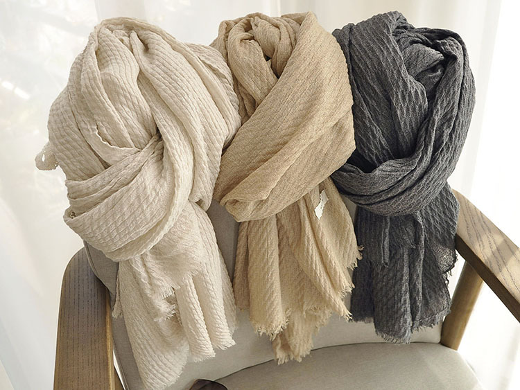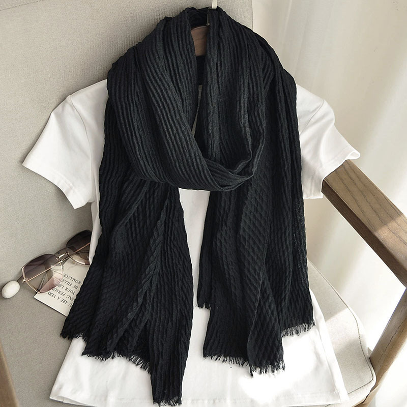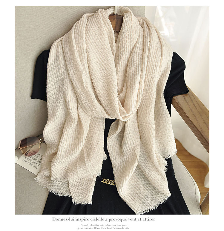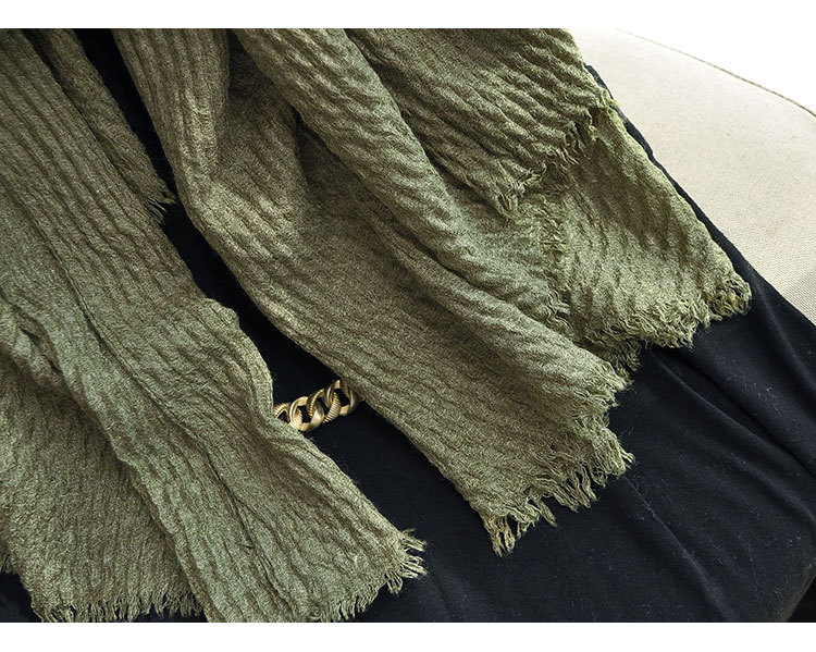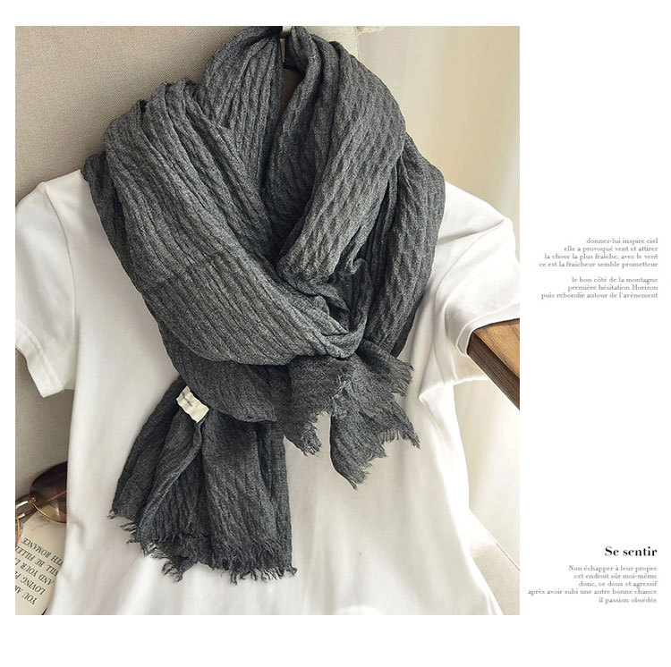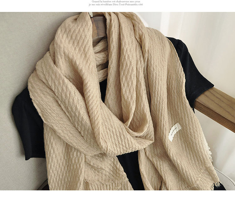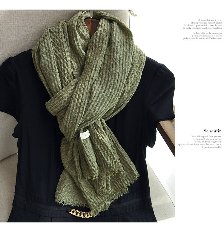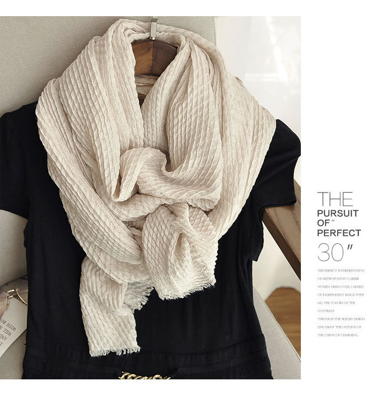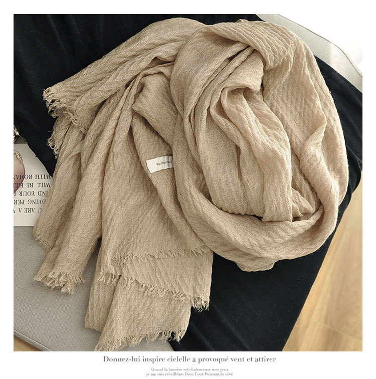 여성을위한 부드러운 일반 물결 무늬 면화와 린넨 스카프 가을, 겨울 얇은 문학 스타일 복고풍 스카프 실크 스카프 목도리 단색스토어 가기