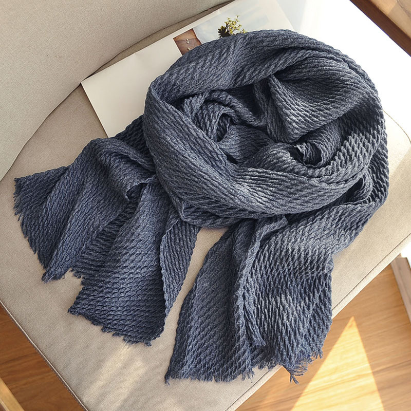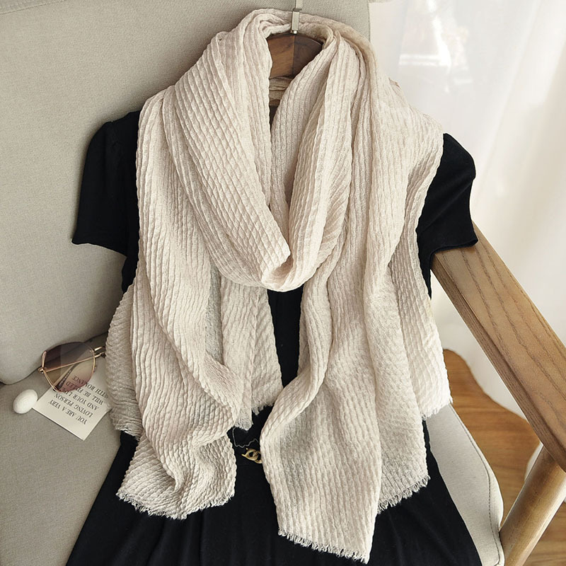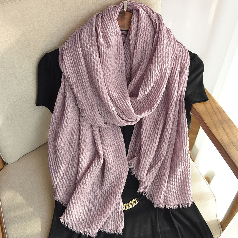 여성을위한 부드러운 일반 물결 무늬 면화와 린넨 스카프 가을, 겨울 얇은 문학 스타일 복고풍 스카프 실크 스카프 목도리 단색