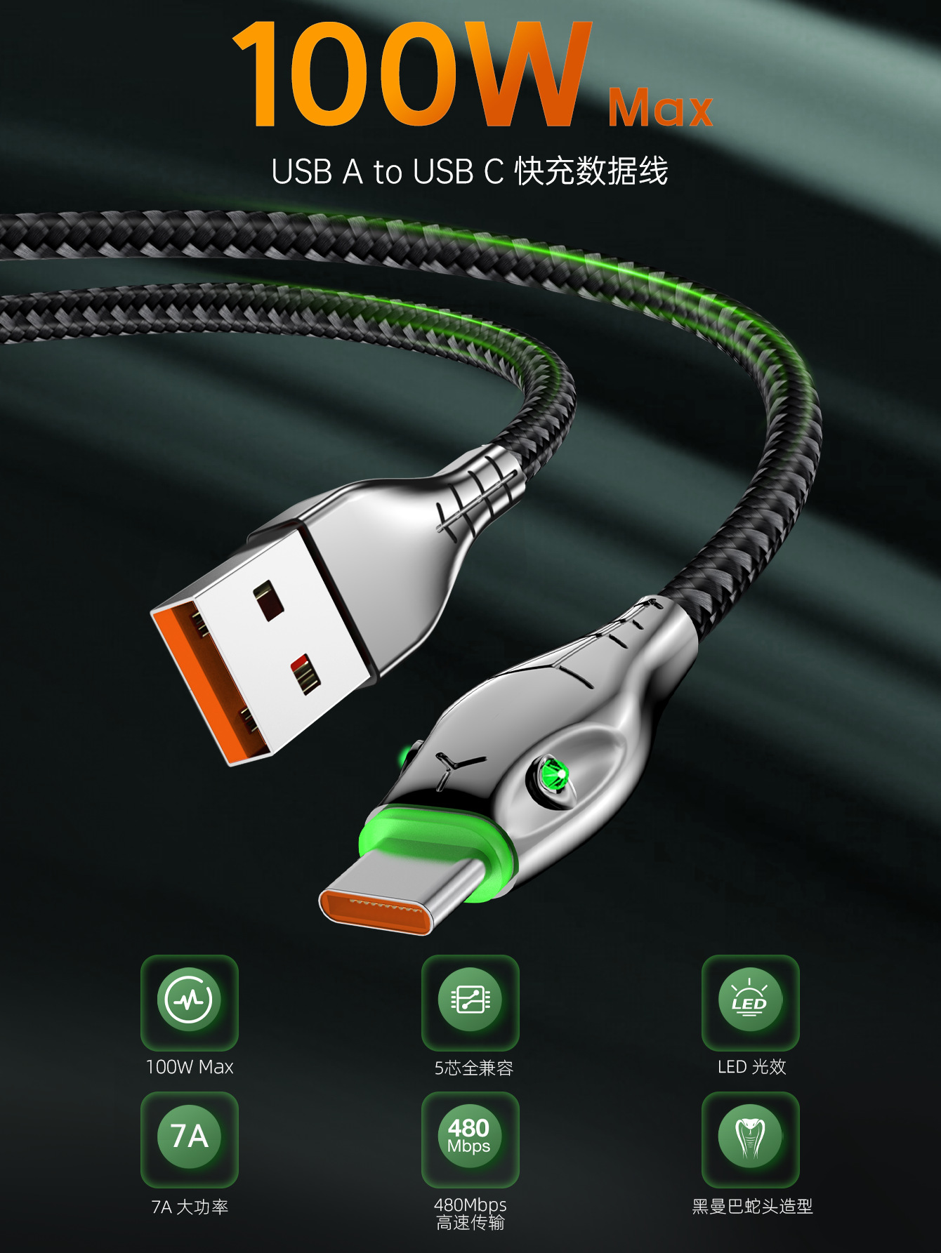 【产品名称】黑曼巴AC 7A快充数据线