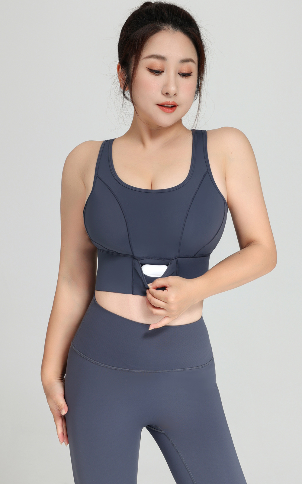 새로운 포켓 스포츠 브라, 대형, 길어진 복부 피트니스 조끼, 충격 방지, 슬리밍, 아름다운 등, 중공 요가 브라