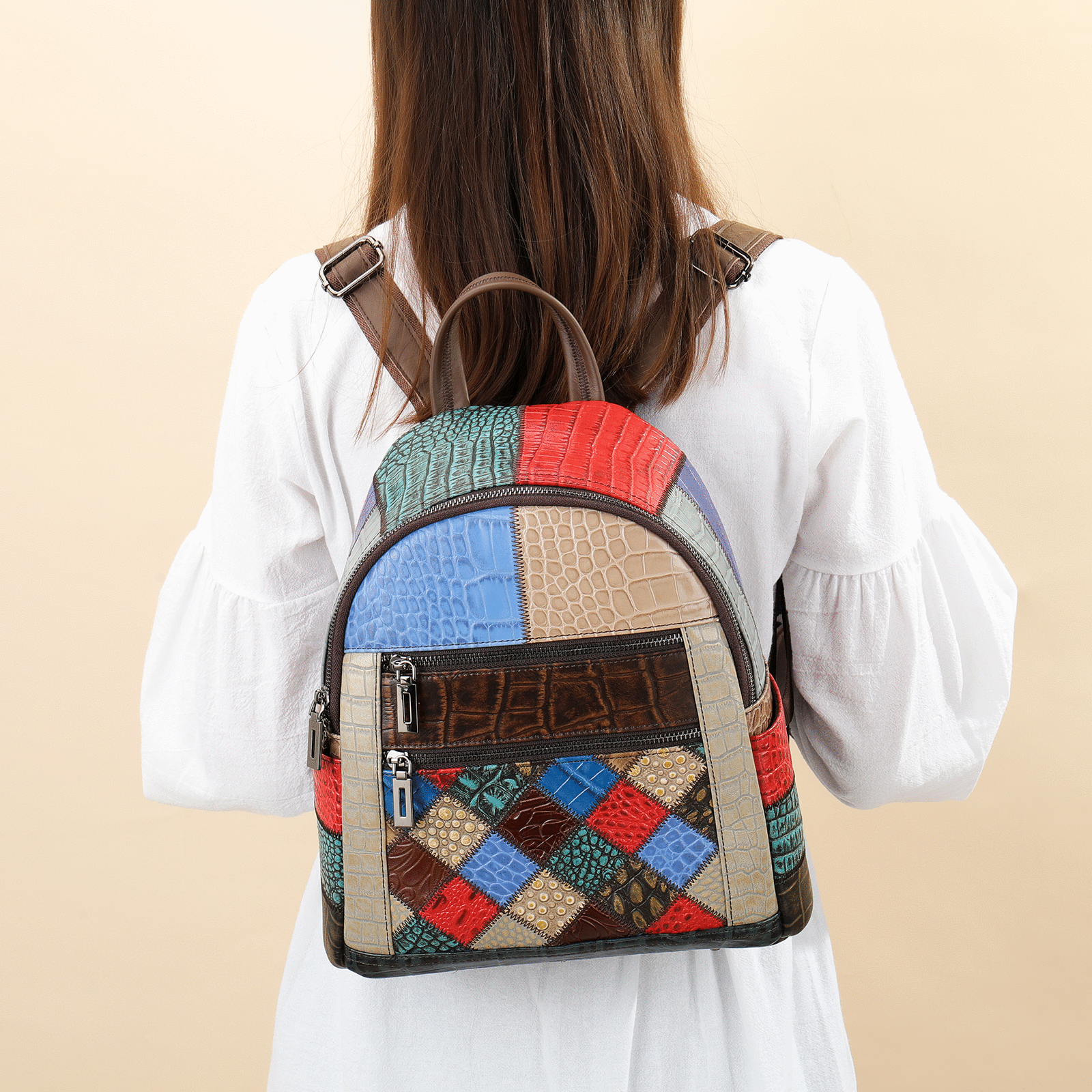 새로운 색상 작은 배낭 여성의 틈새 스티치 배낭 가죽 복고풍 에스닉 소가죽 배낭