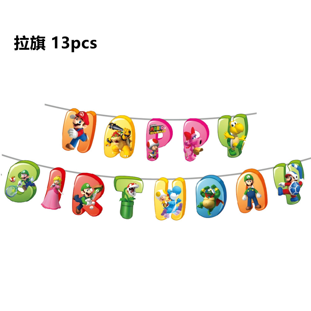 마리오 테마 파티 장식 용품 일회용 식기 종이 트레이 종이컵 당겨 깃발 풍선 생일 세트