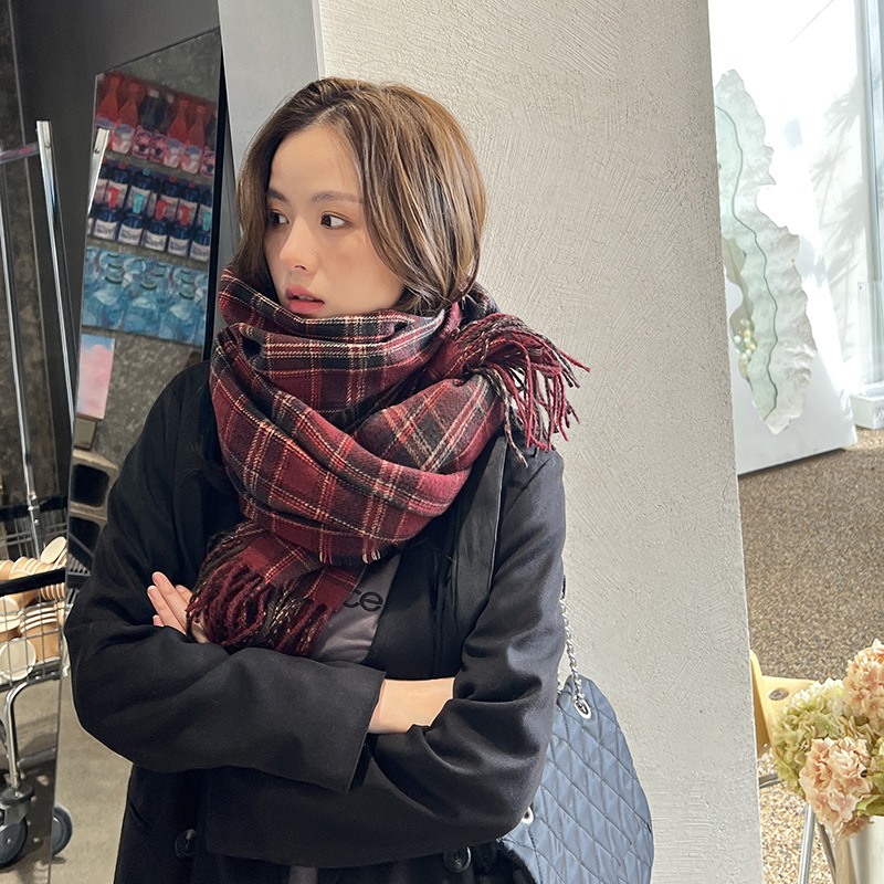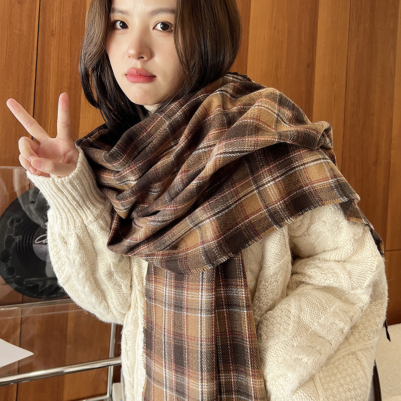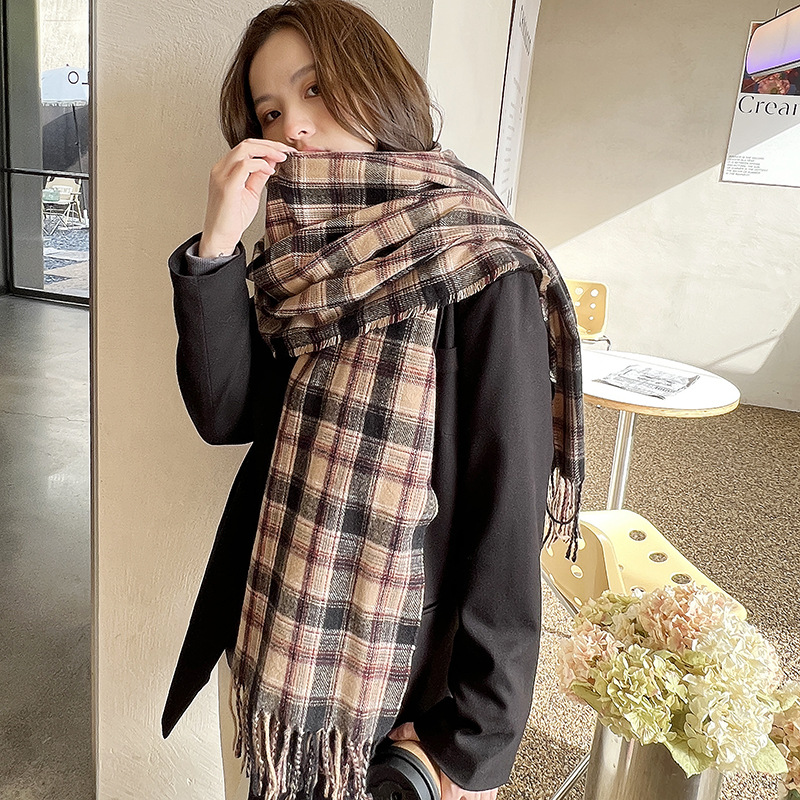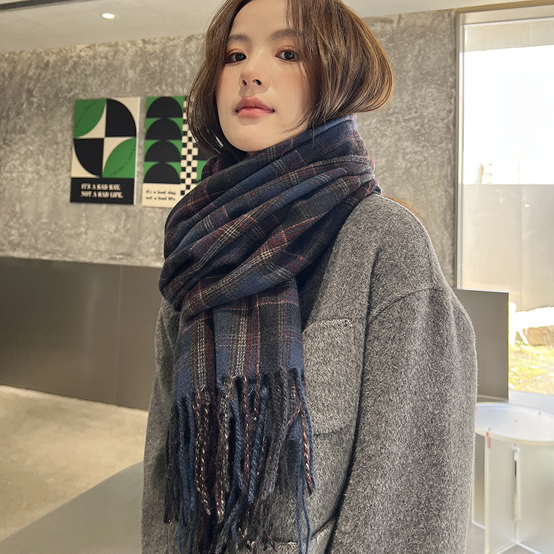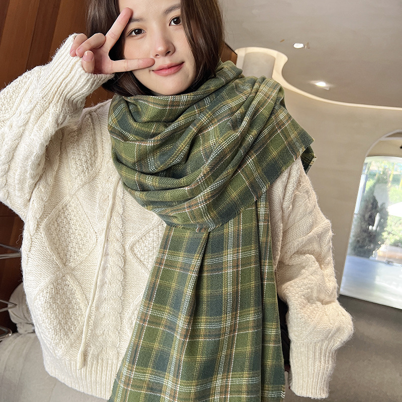 절인 녹색 격자 무늬 스카프 여자의 한국 숄 스카프 겨울 두꺼운 따뜻한 캐시미어 스카프 소스 공장 도매