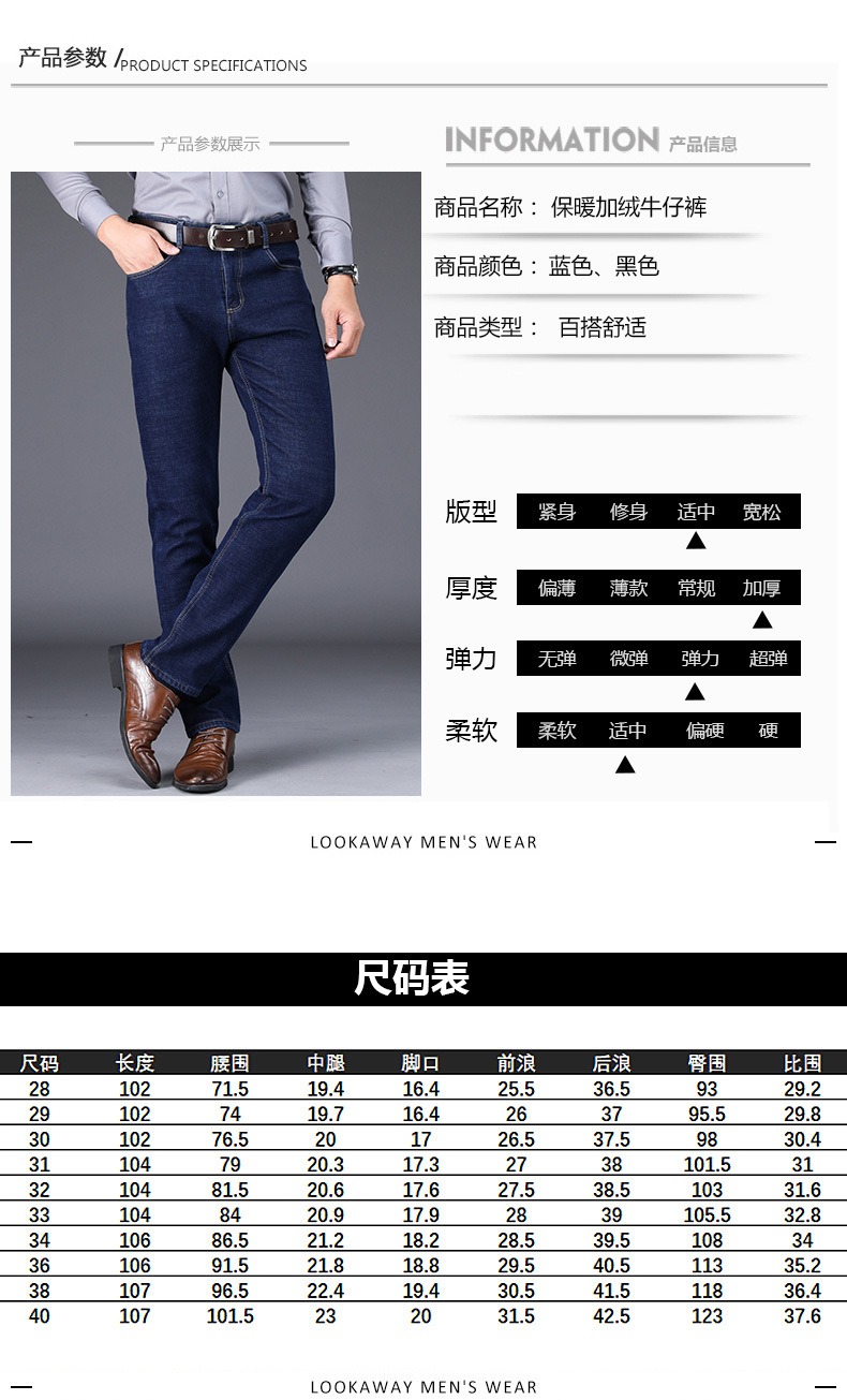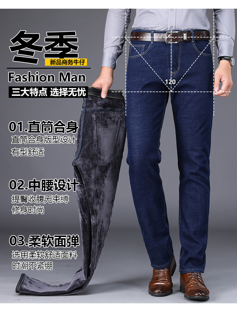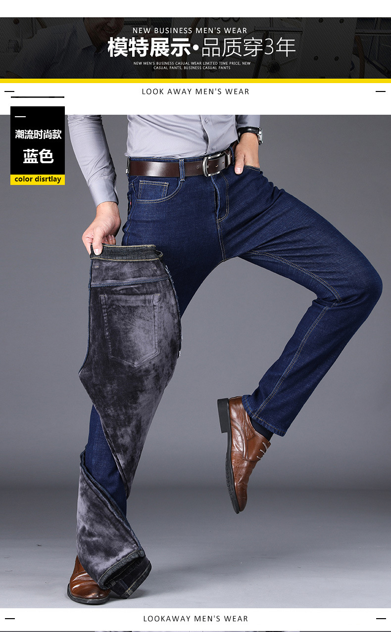 Daifa 하이 퀄리티 라이브 겨울 기모 청바지 남자의 두꺼운 스트레이트 느슨한 따뜻한 중년 남자의 하이 웨이스트 바지스토어 가기