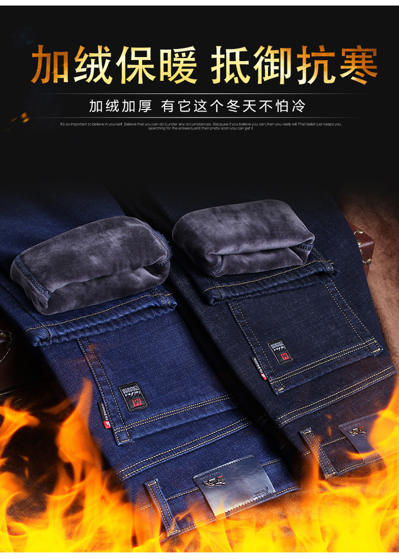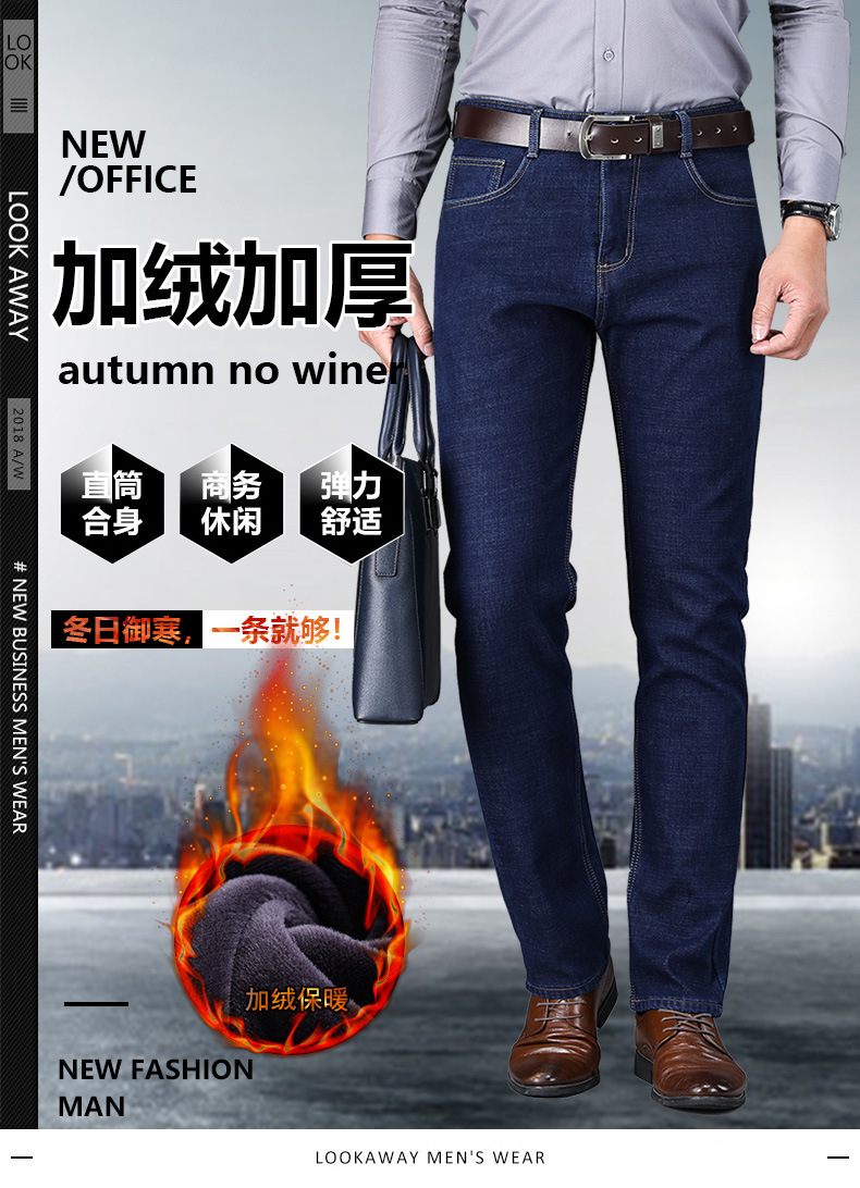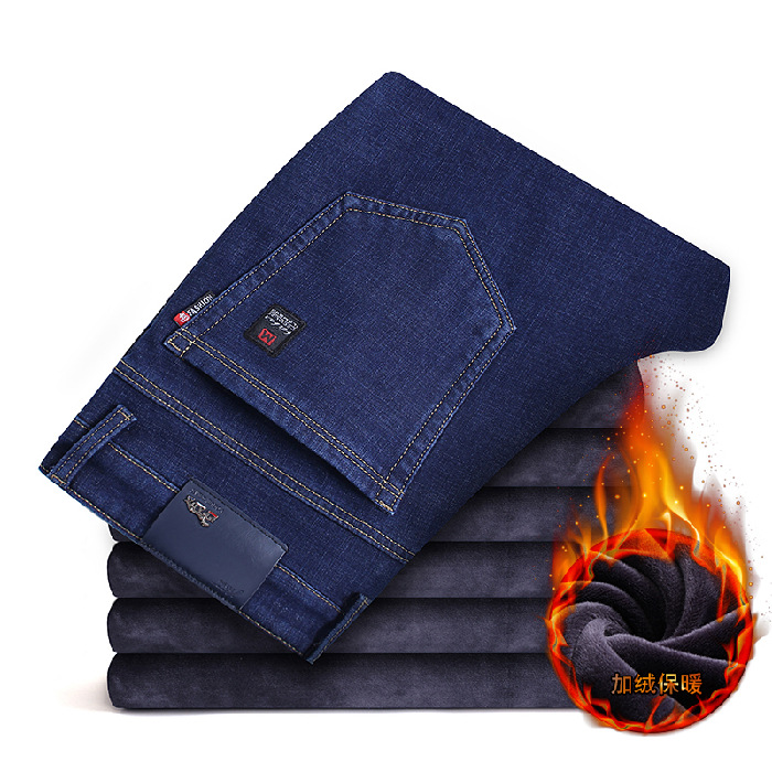 Daifa 하이 퀄리티 라이브 겨울 기모 청바지 남자의 두꺼운 스트레이트 느슨한 따뜻한 중년 남자의 하이 웨이스트 바지