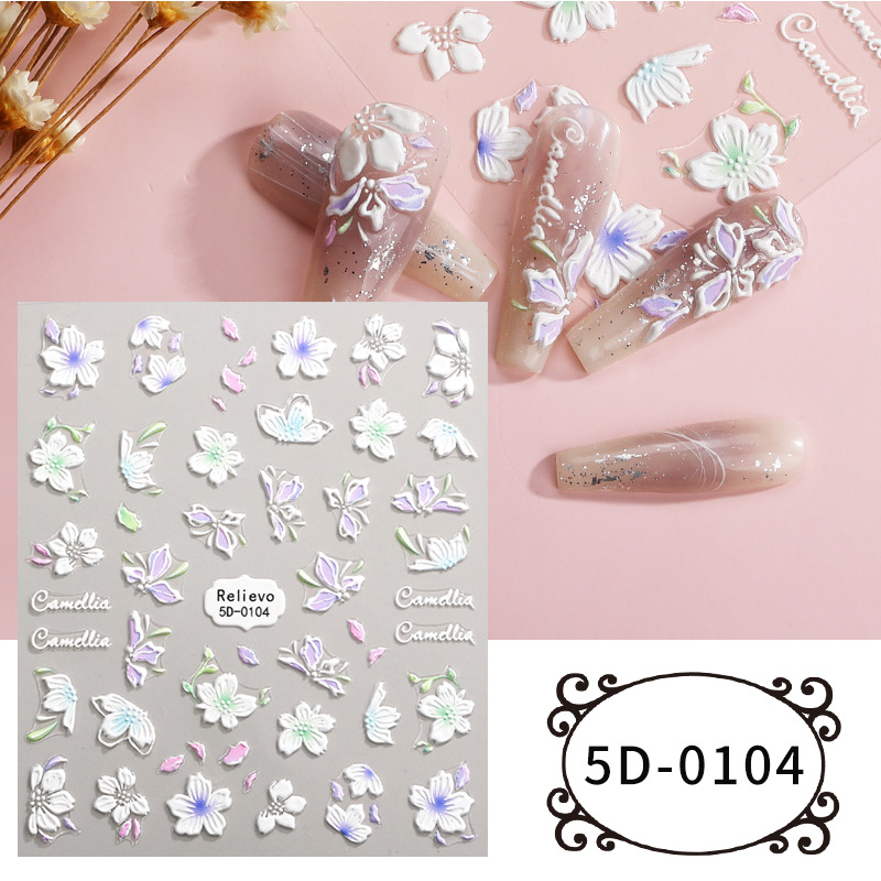 Zhengxiang Net Red Camellia 네일 아트 스티커 양각 5d 꽃 DIY 복고풍 매니큐어 스티커 INS 네일 스티커 맞춤형