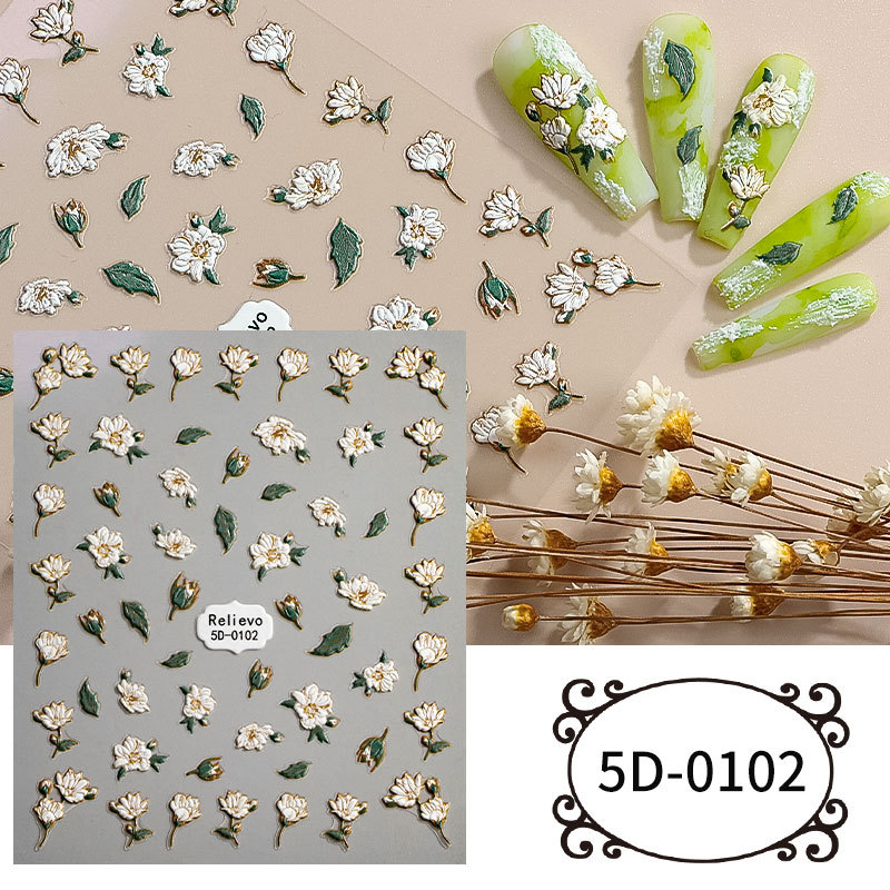 Zhengxiang Net Red Camellia 네일 아트 스티커 양각 5d 꽃 DIY 복고풍 매니큐어 스티커 INS 네일 스티커 맞춤형스토어 가기