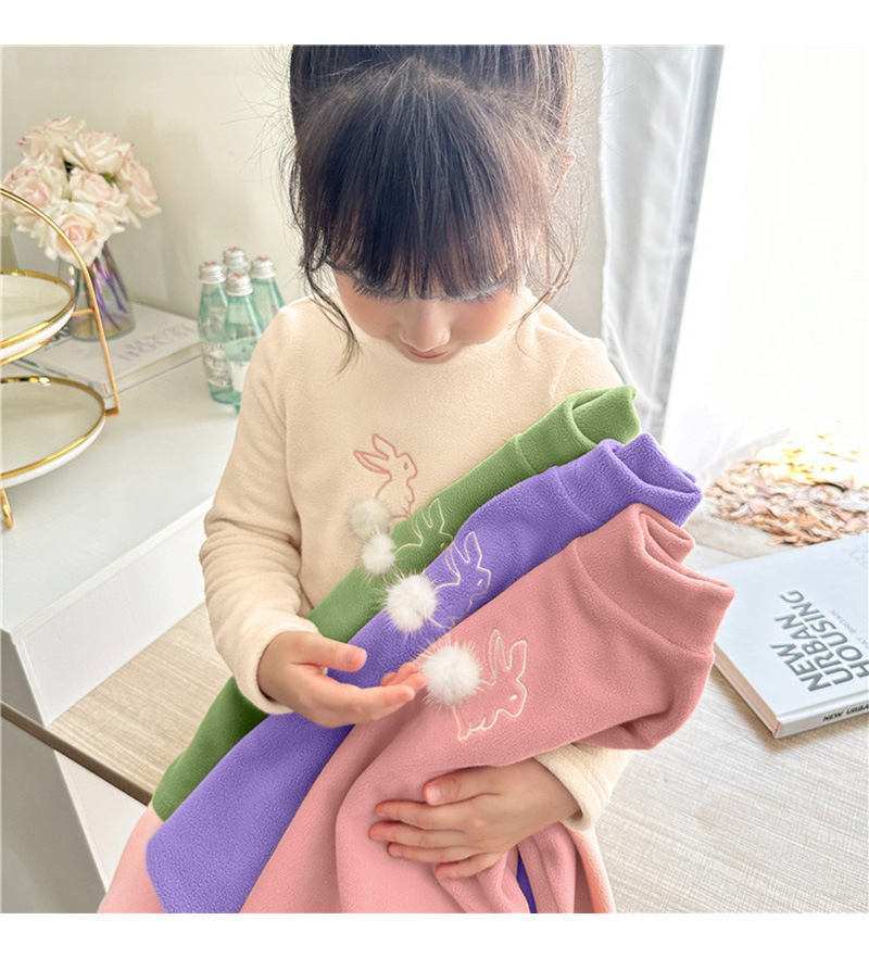 가을과 겨울 2022 새로운 스타일의 모든 경기 수 놓은 토끼 자켓 올림픽 그레인 벨벳 기모 두꺼운 아동복
