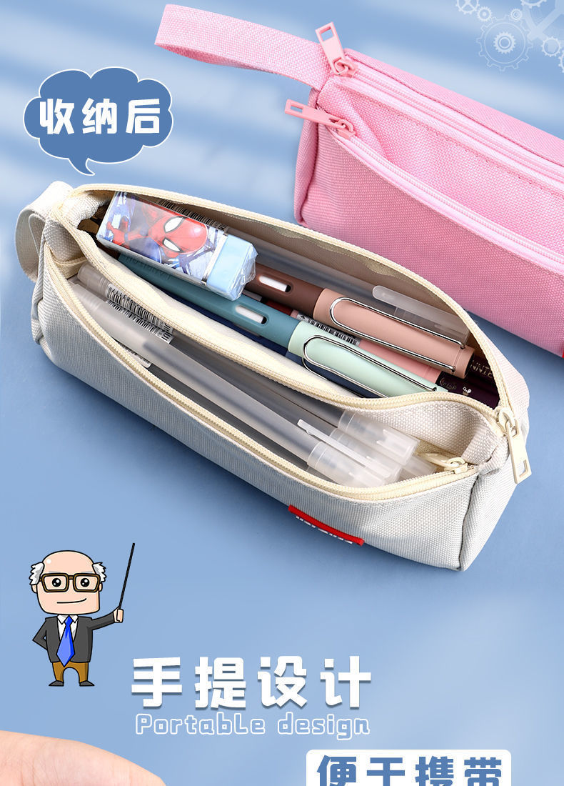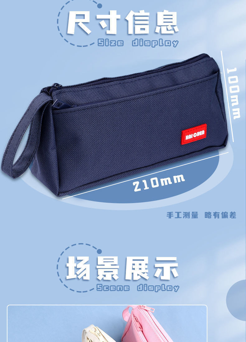 한국 스타일 심플 대용량 필통 옥스포드 천 문구 가방 학생용 단색 연필 케이스 도매 20cm스토어 가기