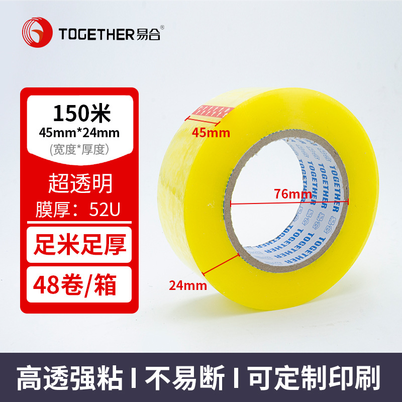 • 투명한 노란색 [폭 4.5cm, 두께 2.4cm 및 길이 150 m] 전체 상자에 48 개의 롤을 사용합니다. 1 롤