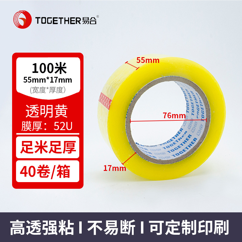• 투명한 노란색 [너비 5.5cm 순수한 고기 두께 1.7cm 길이 100 미터] 전체 상자 샷 40 롤; 1 롤