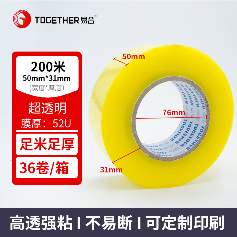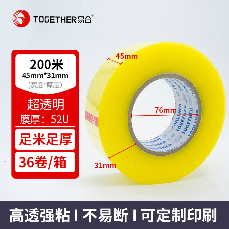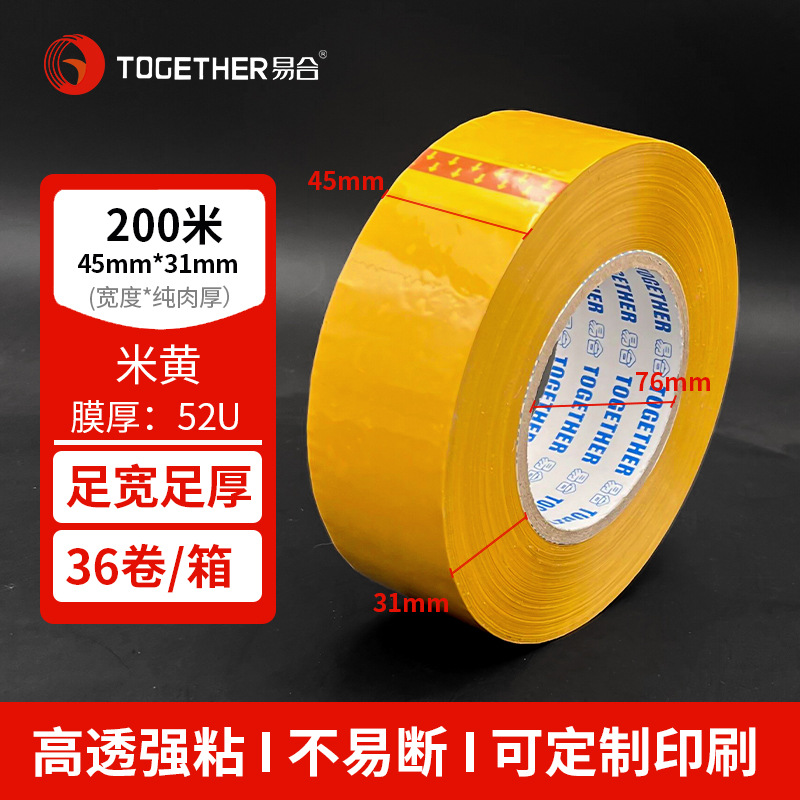 • 투명한 노란색 [너비 4.5cm 순수한 고기 두께 3.1cm 길이 200 미터] 전체 상자 샷 36 롤; 1 롤