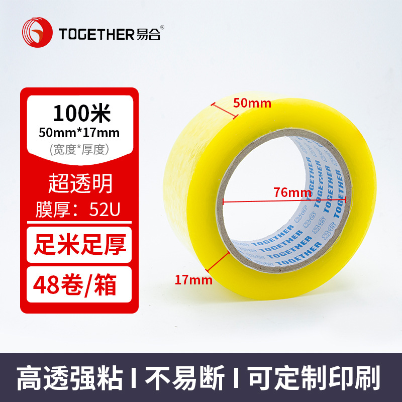 • 투명 노란색 [폭 4.2cm, 순수한 두께 1.7cm, 길이 100m ] 전체 상자에 54롤, 1롤