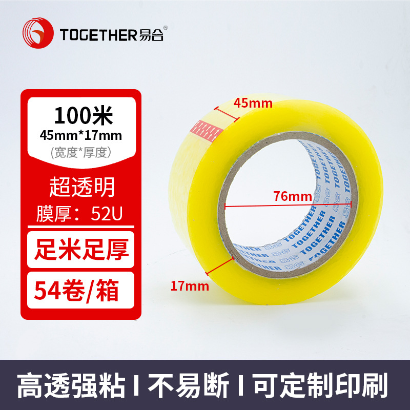 • 투명한 노란색 [너비 4.5cm, 두께 1.7cm, 길이 100 m] 전체 상자에 54 개의 롤을 사용합니다. 1 롤