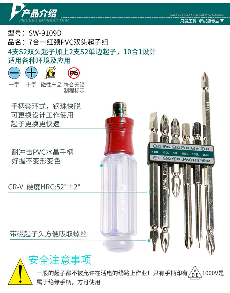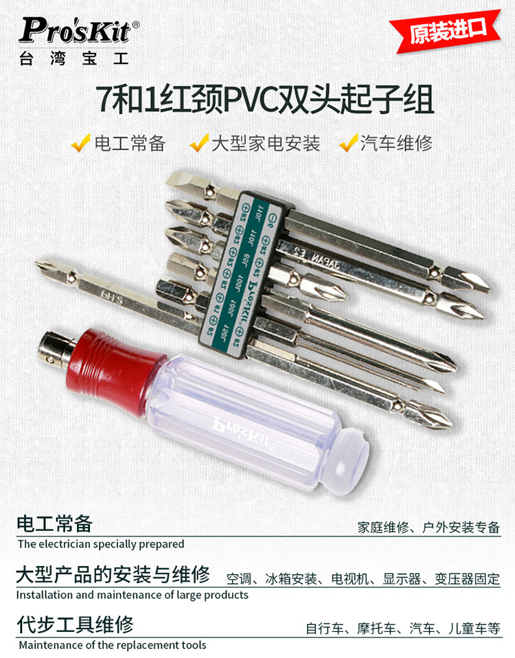 대만 Baogong 이중 목적 스크루 드라이버 필립스 한 단어로 교체 가능한 스크루 드라이버 더블 헤드 스크루 드라이버 강한 자기 SW-9109D