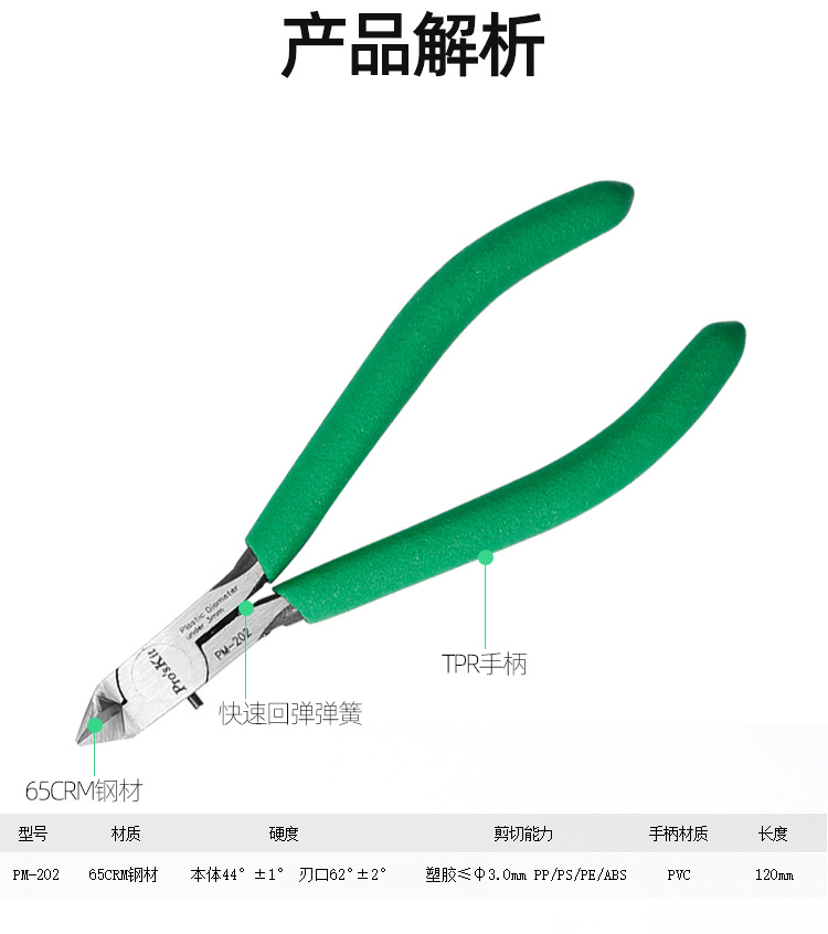 Baogong 플라스틱 모델 특수 펜치 전자 펜치 건담 조립 비스듬한 코 펜치 얇은 단일 블레이드 오목한 펜치 절단 펜치 PM-202