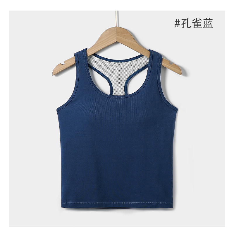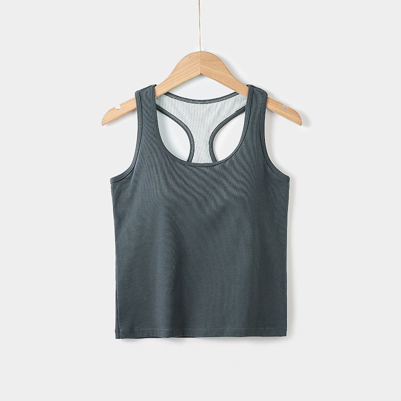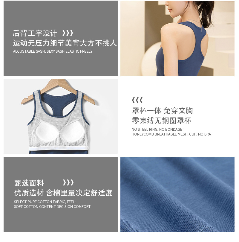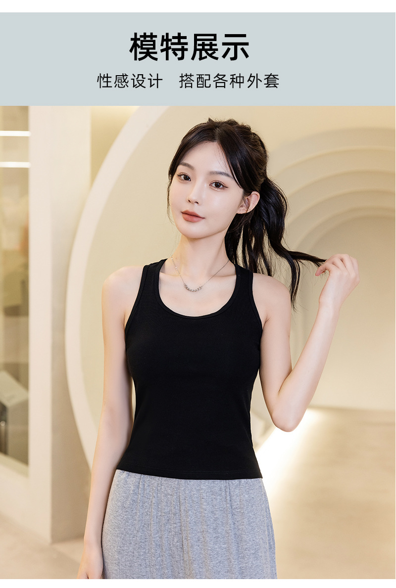 슬링 가슴 패드 원피스 아름다운 등 스포츠 요가 민소매 탑 면 I 자형 여름 바닥 순면 조끼 여성용