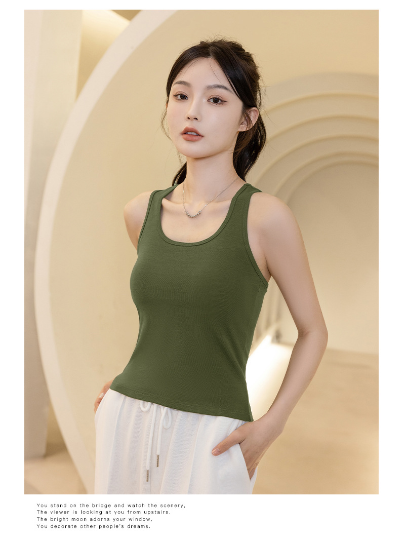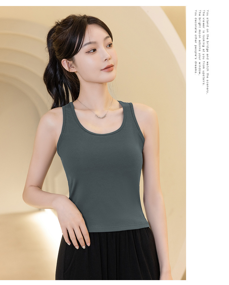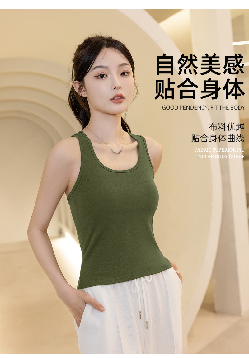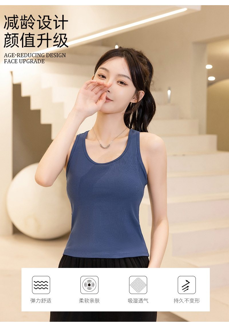 슬링 가슴 패드 원피스 아름다운 등 스포츠 요가 민소매 탑 면 I 자형 여름 바닥 순면 조끼 여성용