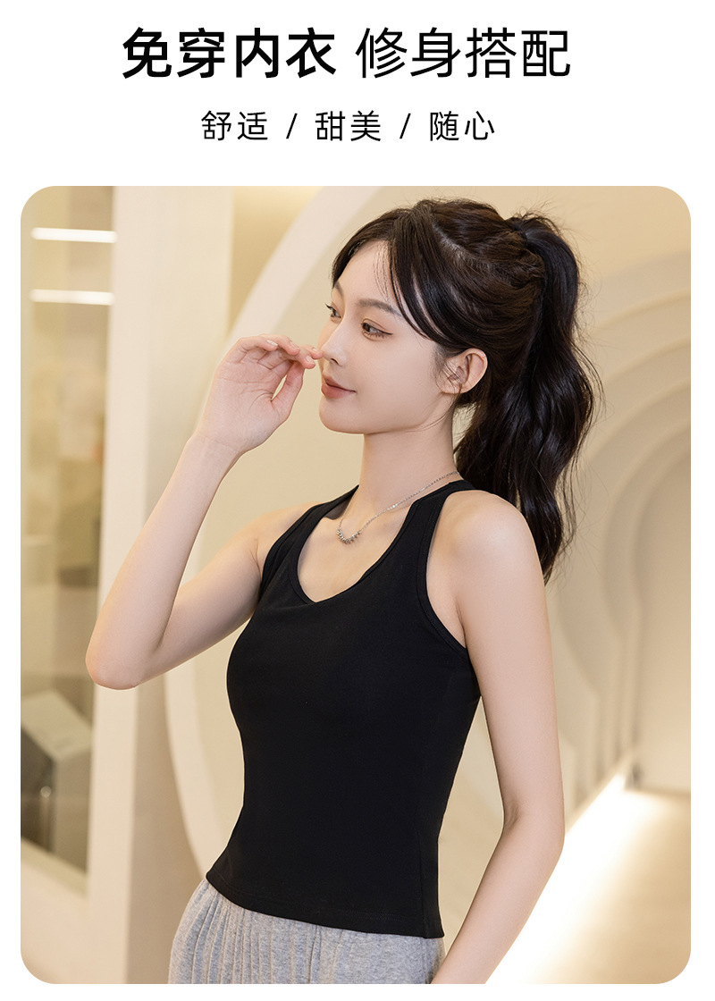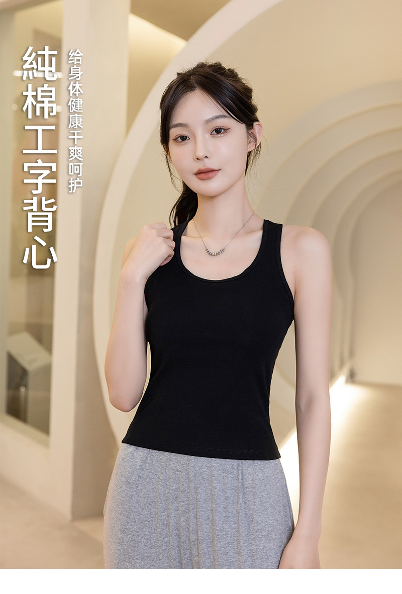 슬링 가슴 패드 원피스 아름다운 등 스포츠 요가 민소매 탑 면 I 자형 여름 바닥 순면 조끼 여성용스토어 가기