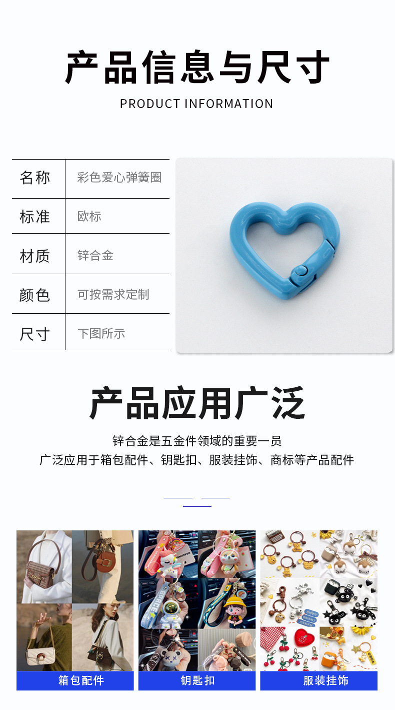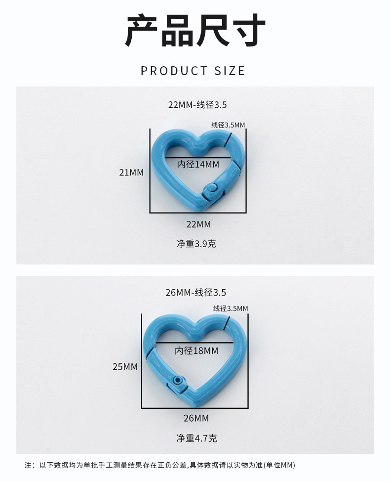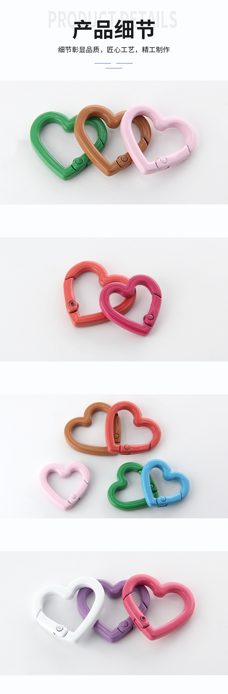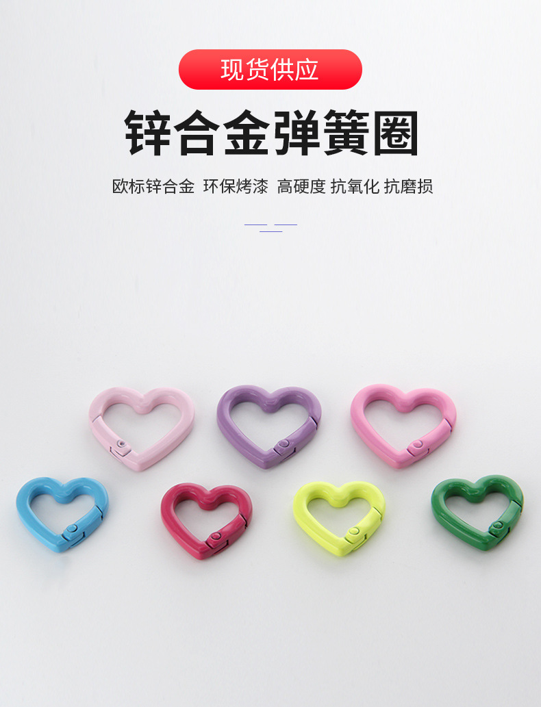 페인트 컬러 하트 모양의 합금 스프링 버클 오픈 스프링 링 헤드셋 키 체인 교수형 수하물 DIY 액세서리스토어 가기