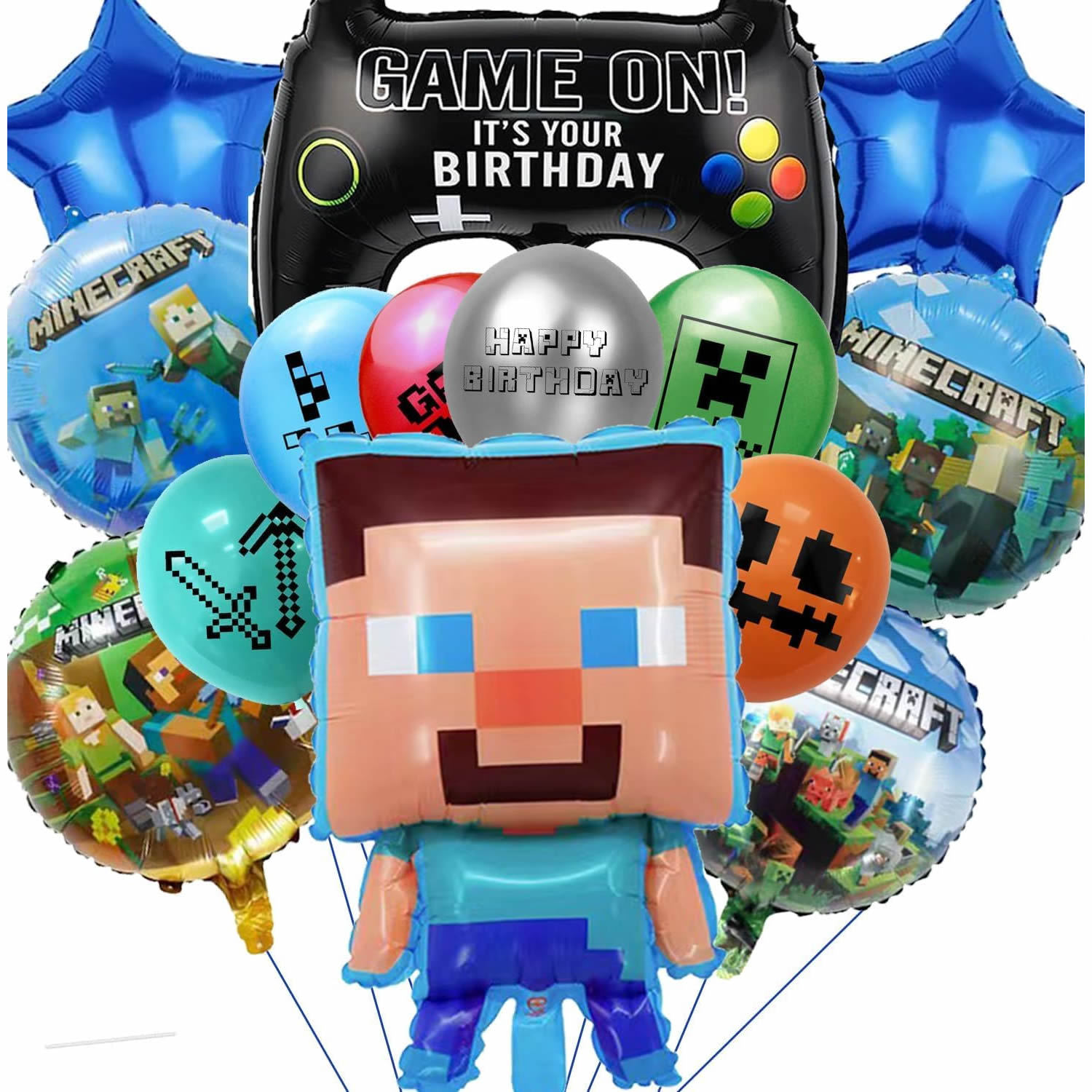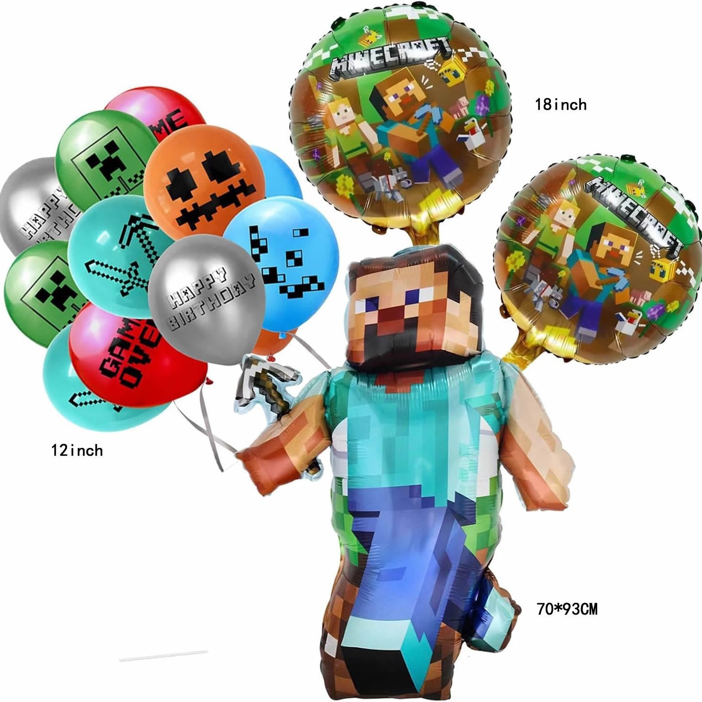 圆球五角星:18寸,乳胶气球:12寸,造型双面罗布乐斯:54*52cm,生日快乐:16寸,我的世界男孩:67*44cm