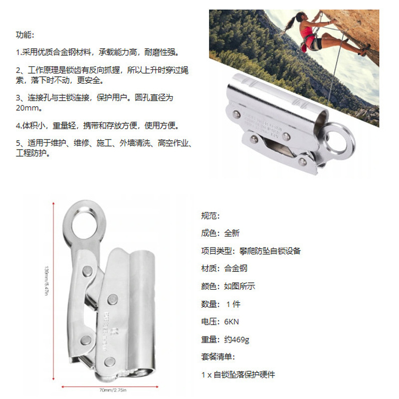 高负载能力:制动滑车和椭圆形钢制登山扣具有高负载能力。