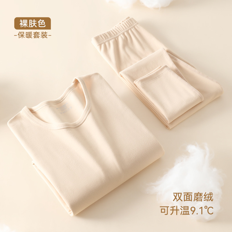 가을과 겨울 열 속옷 여성 기모 플러스 두꺼운 벨벳 난방 따뜻한 내부 착용베이스 코트 가을 옷 가을 바지 여성 세트