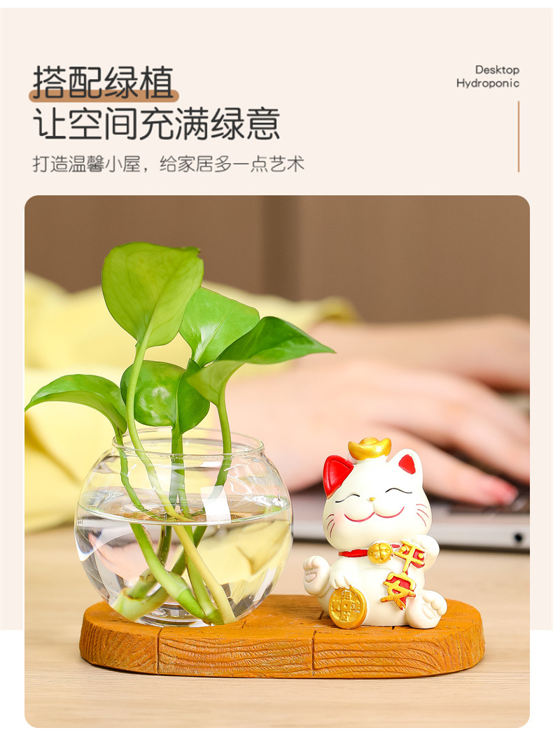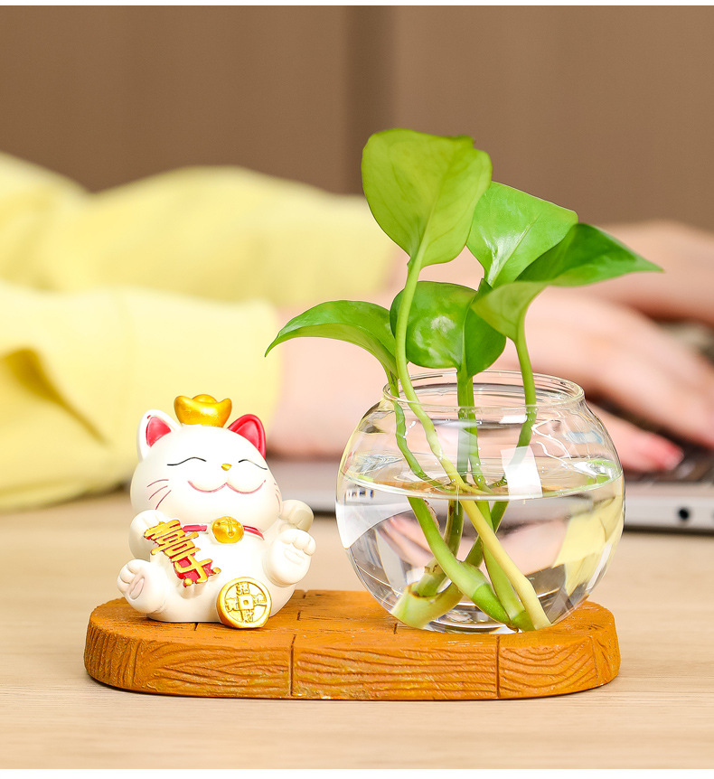 행운의 고양이 장식품을위한 책상 장식품 유리 꽃병 사무실 문화 선물 사무실 귀여운 수제 장식