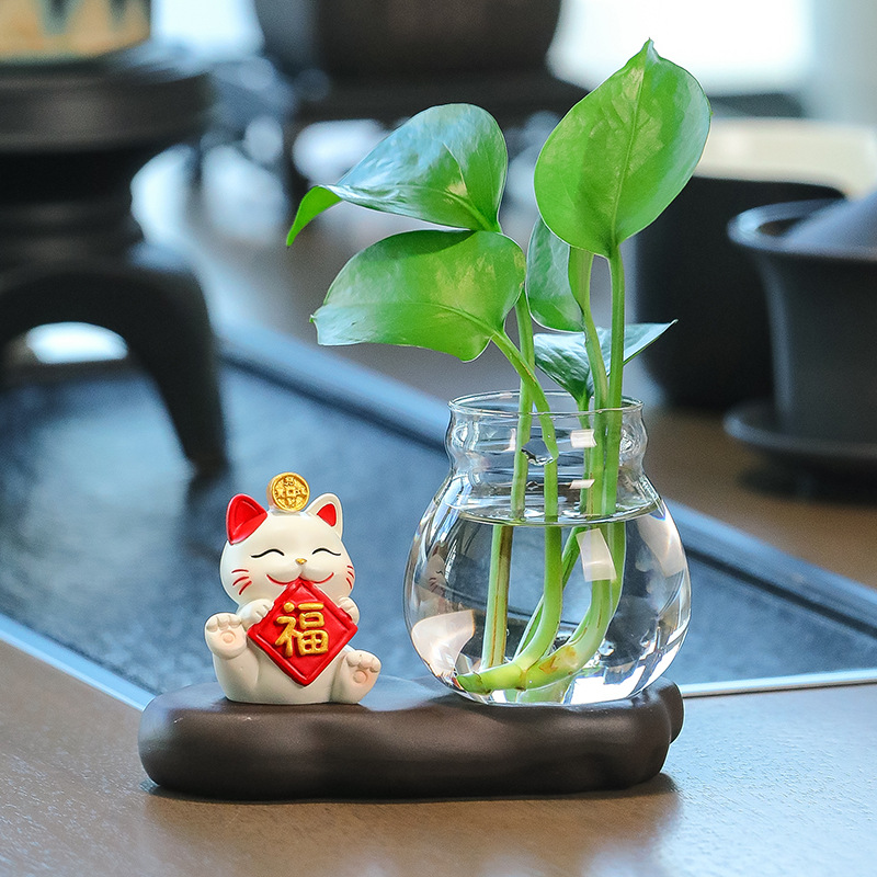 • 【행운】 복주머니 고양이 + 수경 재배/녹색 식물 미포함
