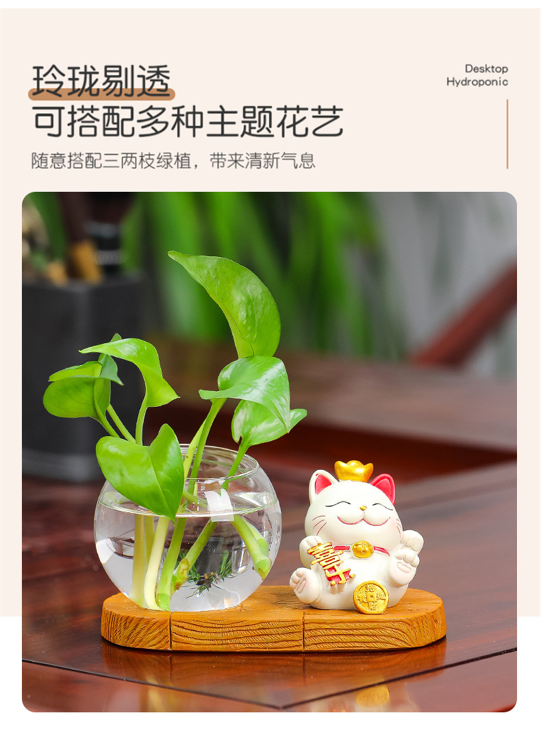 행운의 고양이 장식품을위한 책상 장식품 유리 꽃병 사무실 문화 선물 사무실 귀여운 수제 장식스토어 가기