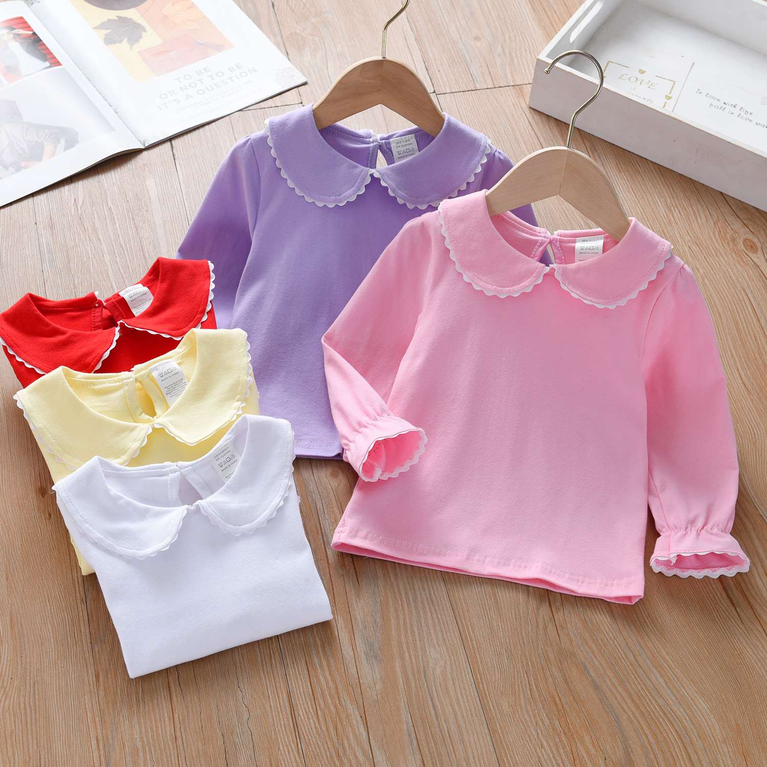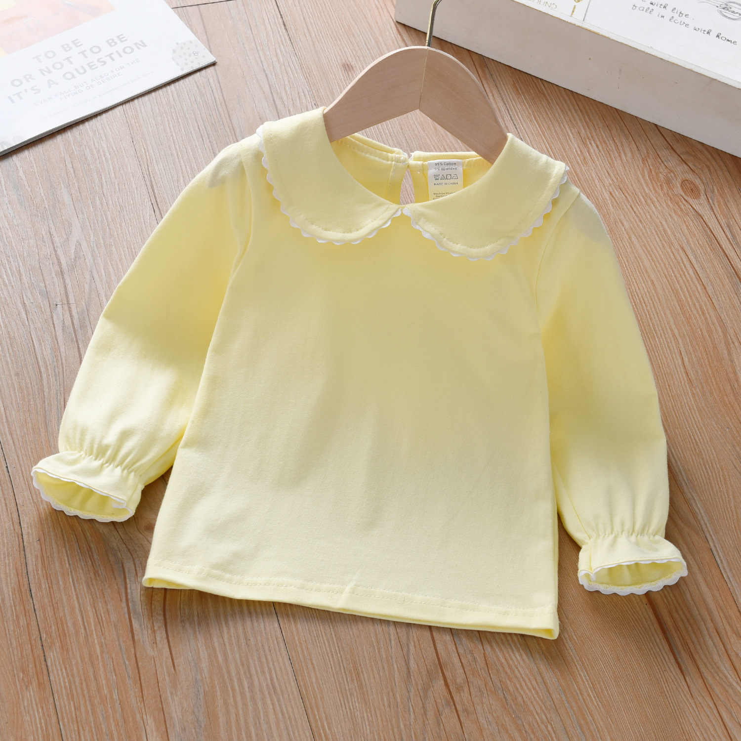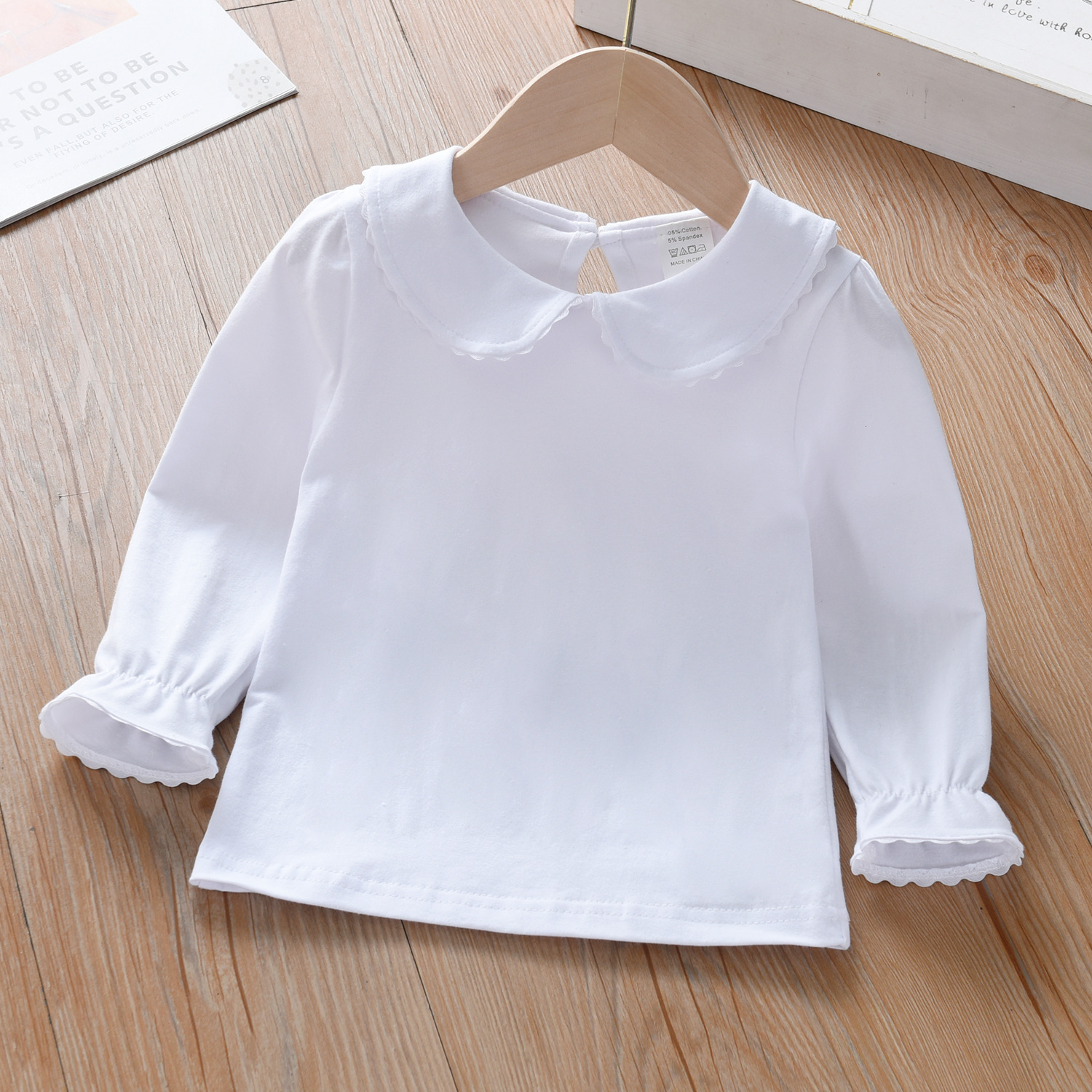 여아 라펠 긴팔 봄과 가을 어린이 아기 인형 칼라 화이트 베이스 셔츠 아기 긴팔 티셔츠 헤어 탑스토어 가기