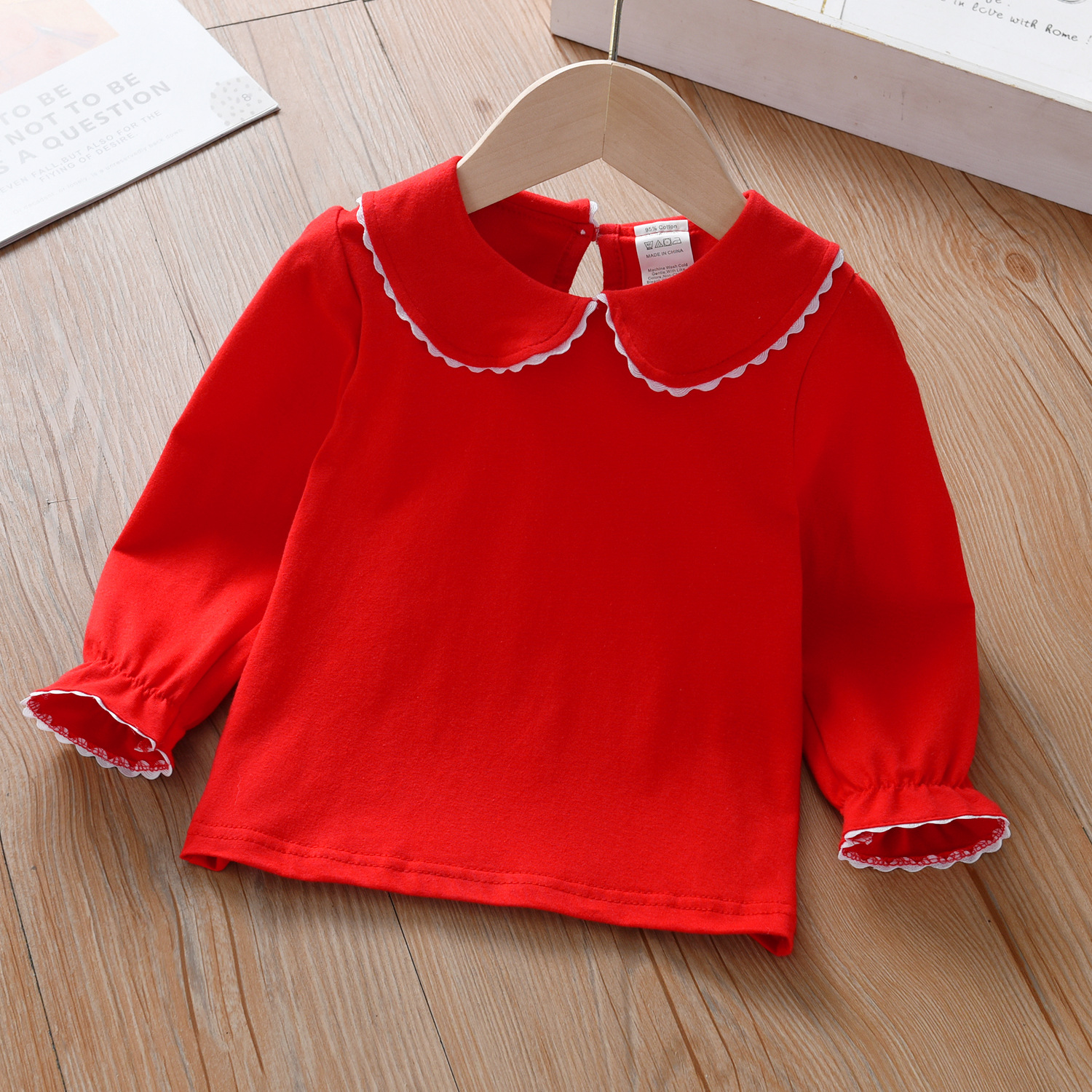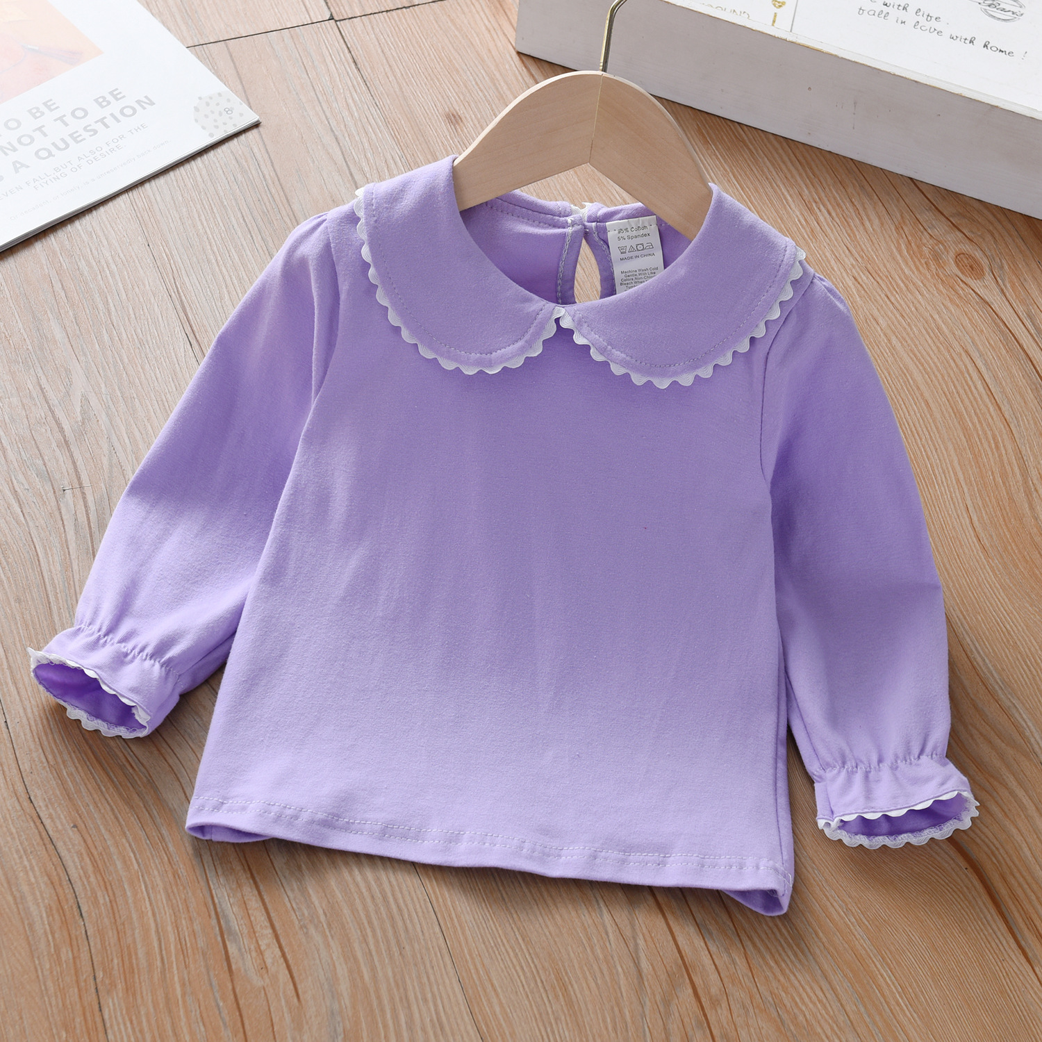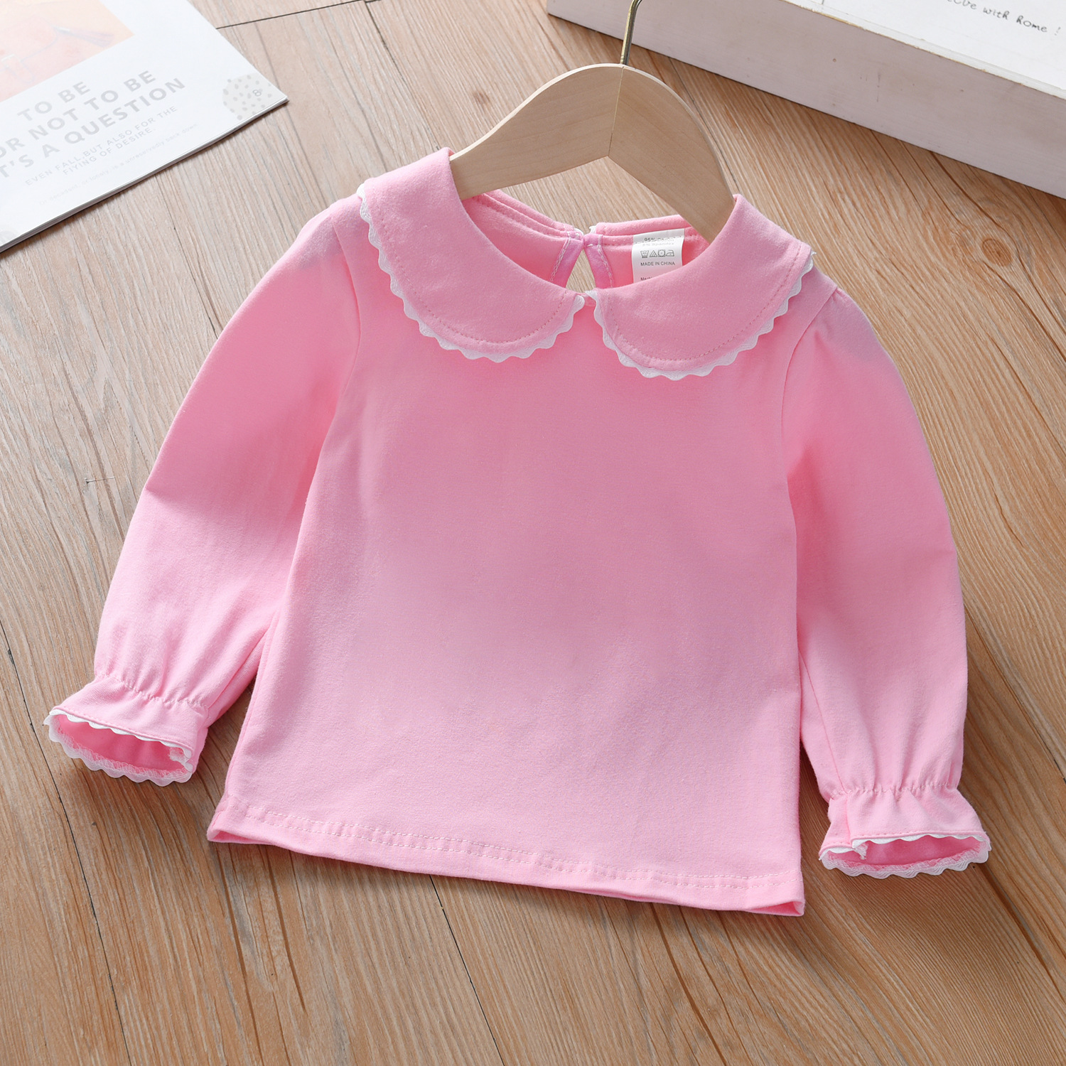 여아 라펠 긴팔 봄과 가을 어린이 아기 인형 칼라 화이트 베이스 셔츠 아기 긴팔 티셔츠 헤어 탑스토어 가기