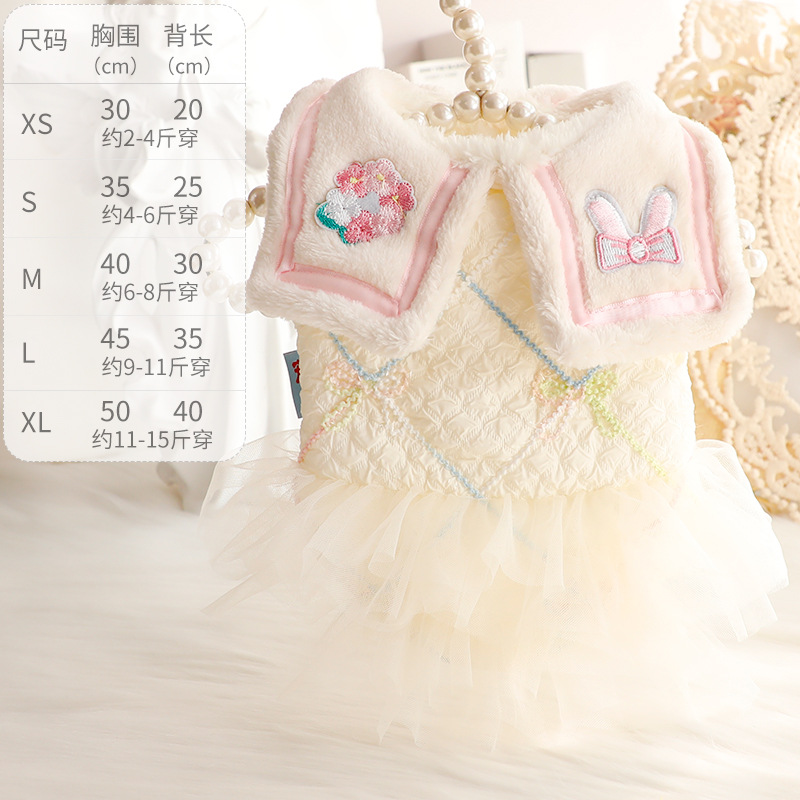 개 옷 가을과 겨울 고양이 공주 치마 귀여운 옷깃 기모 거즈 치마 작은 개 테디 애완 동물 3989 도매스토어 가기