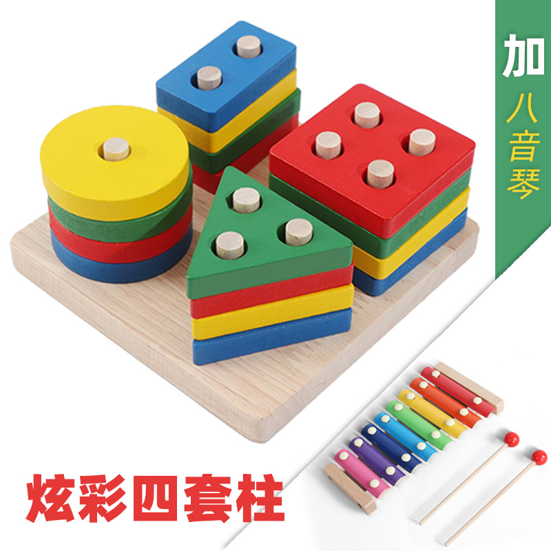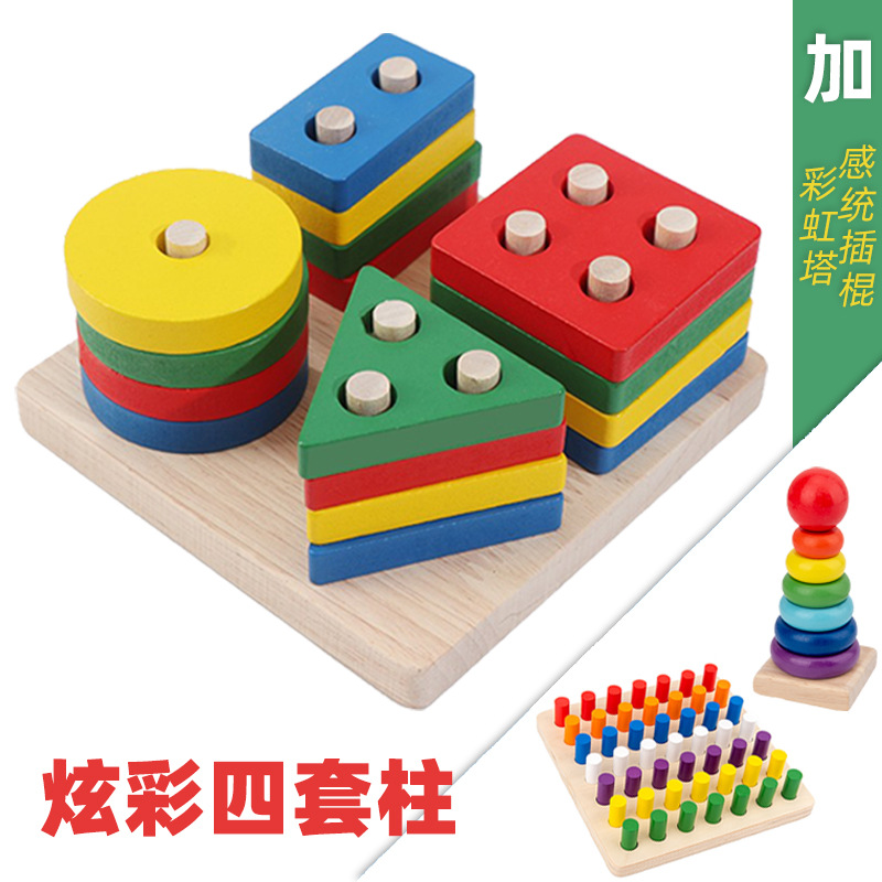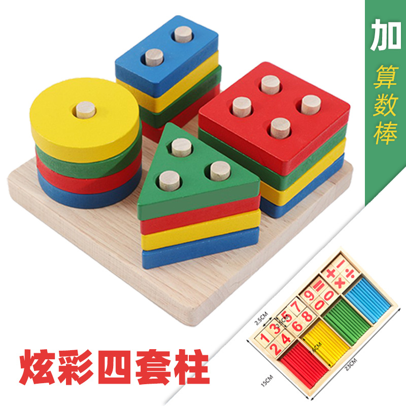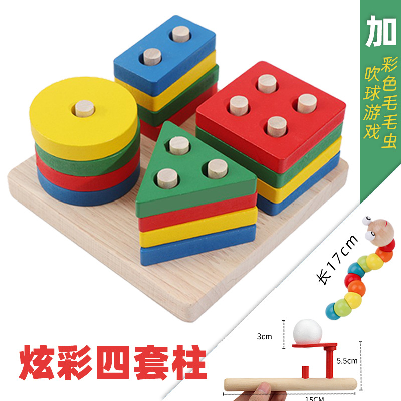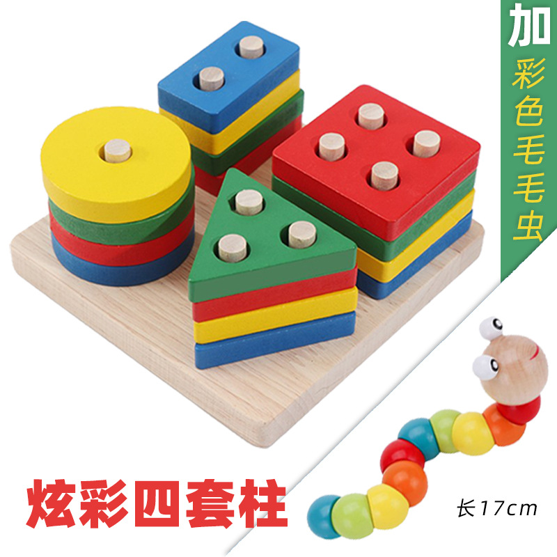 몬테소리 다채로운 기둥 조합 4 세트 애벌레 무지개 타워 스틱 문어 어린이 조기 교육 교육 완구스토어 가기