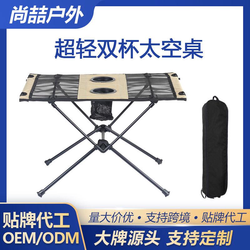 알루미늄 합금 휴대용 접이식 테이블과 의자 야외 용품 캠핑 피크닉 캠핑 식탁 미니 천으로 덮인 더블 컵 공간 테이블