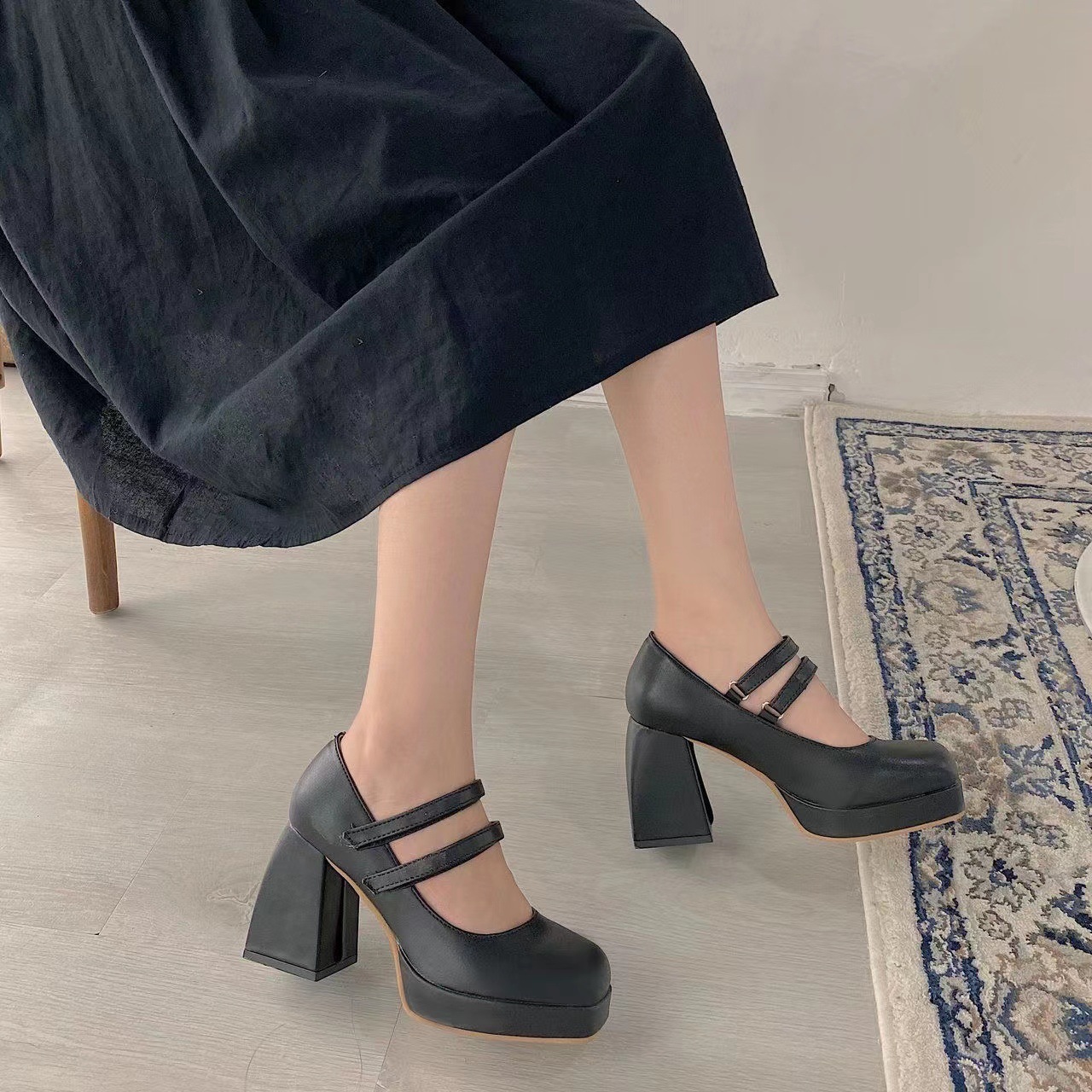 메리 제인 하이힐 여성의 2022 새로운 프랑스 스타일 레트로 청키 힐 들러리 웨딩 신발 쁘띠 여성 신발 플러스 사이즈스토어 가기