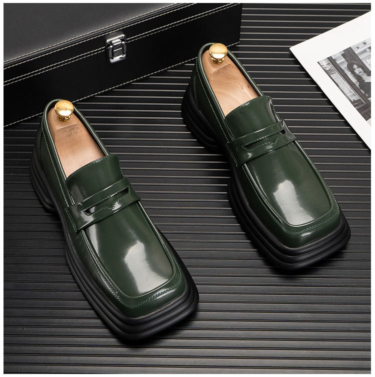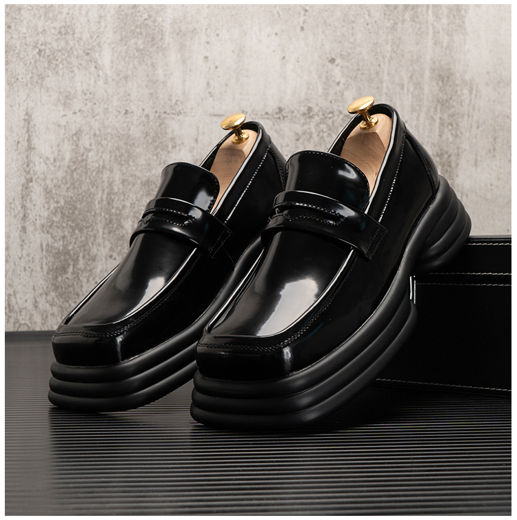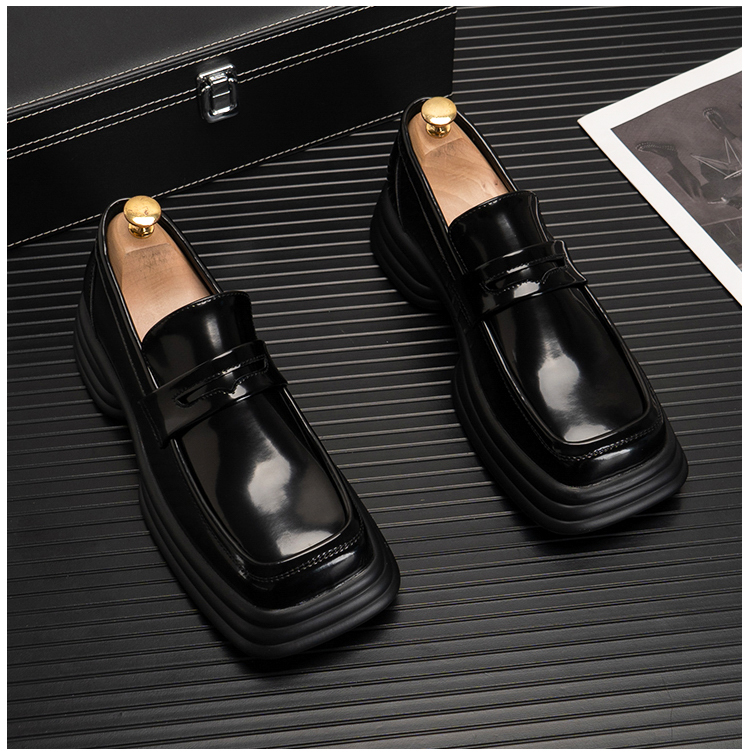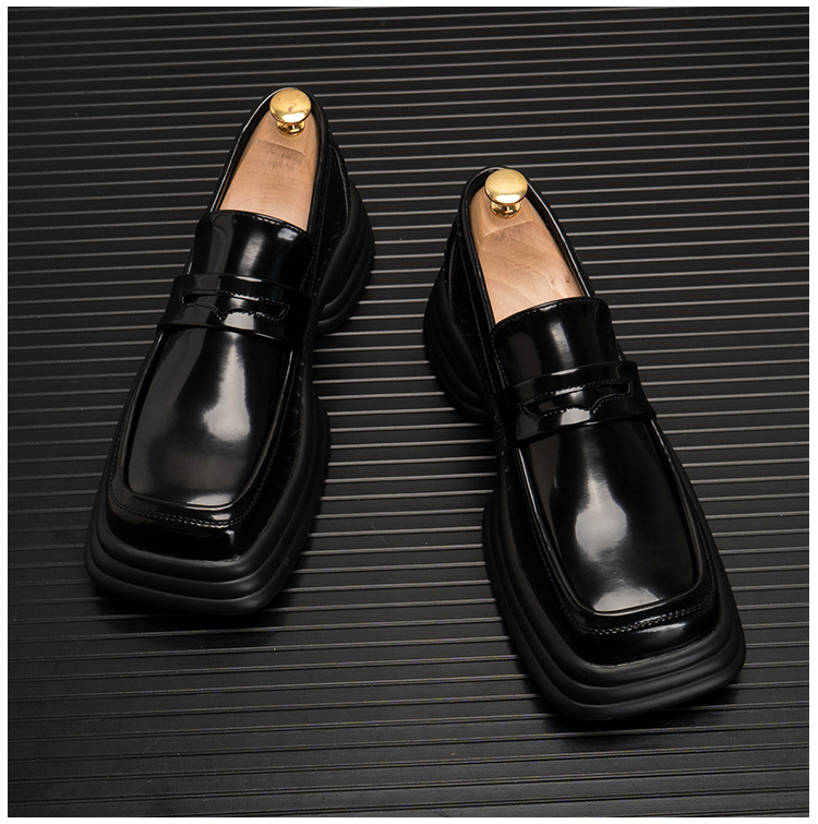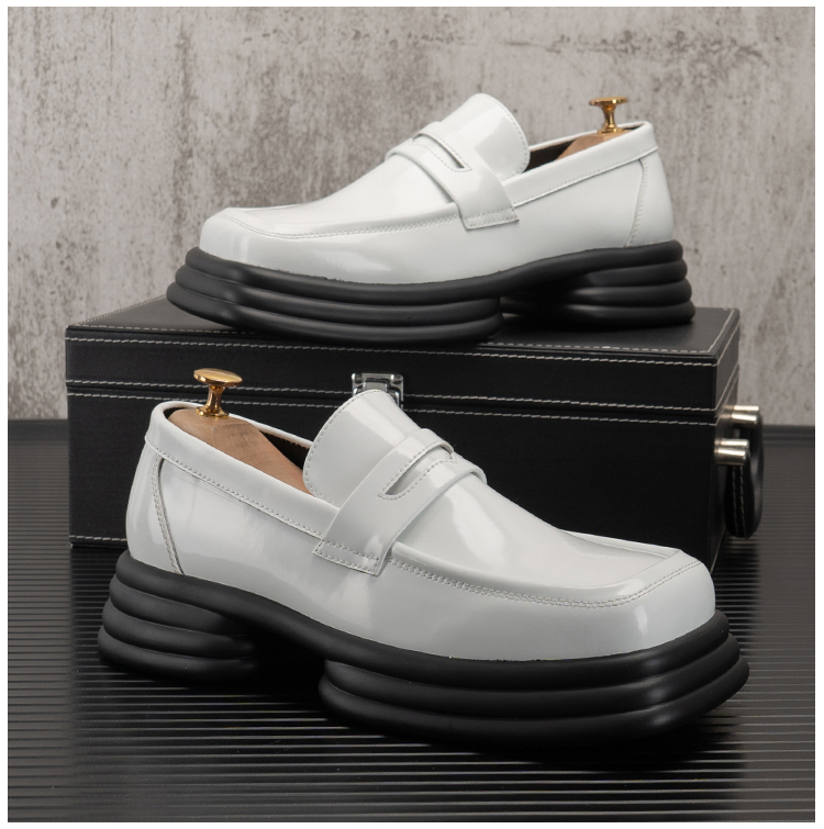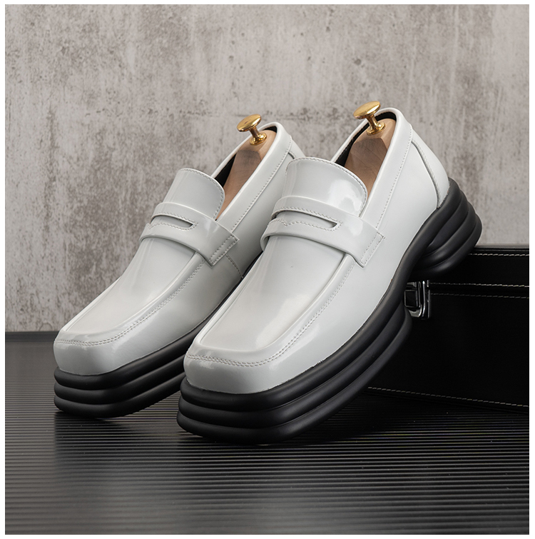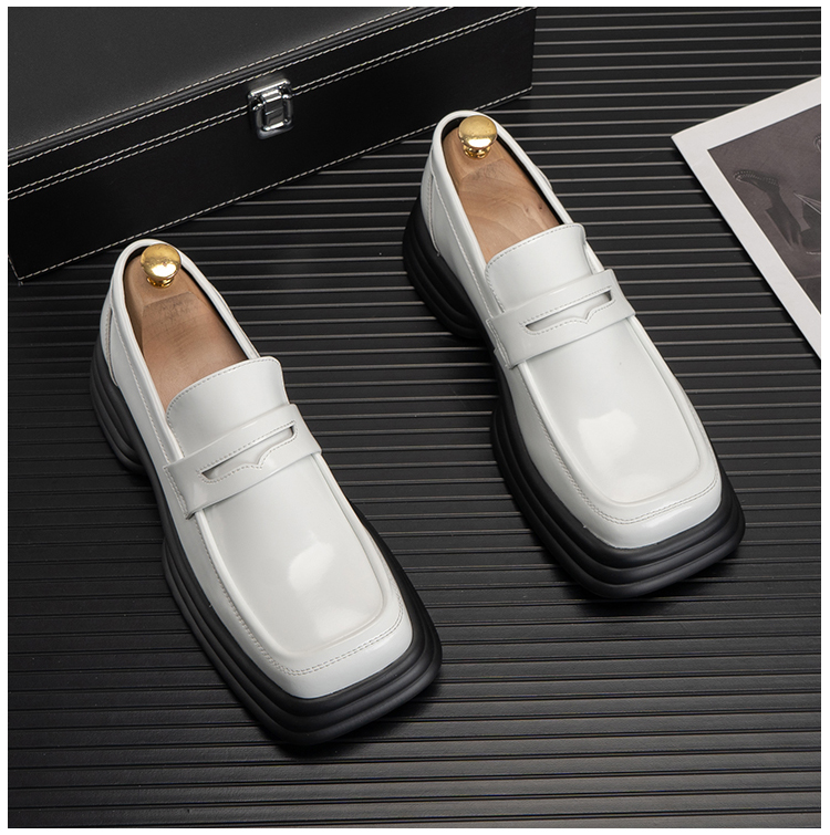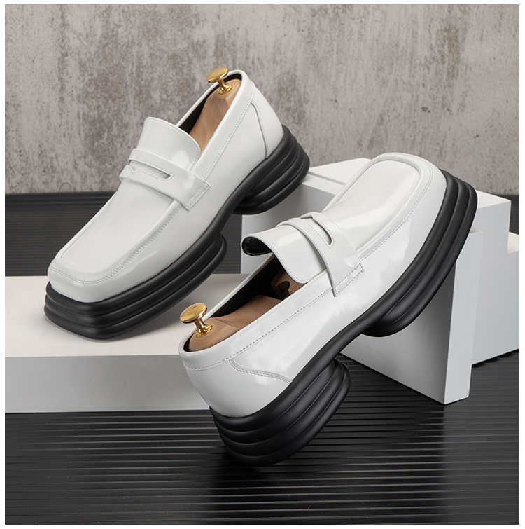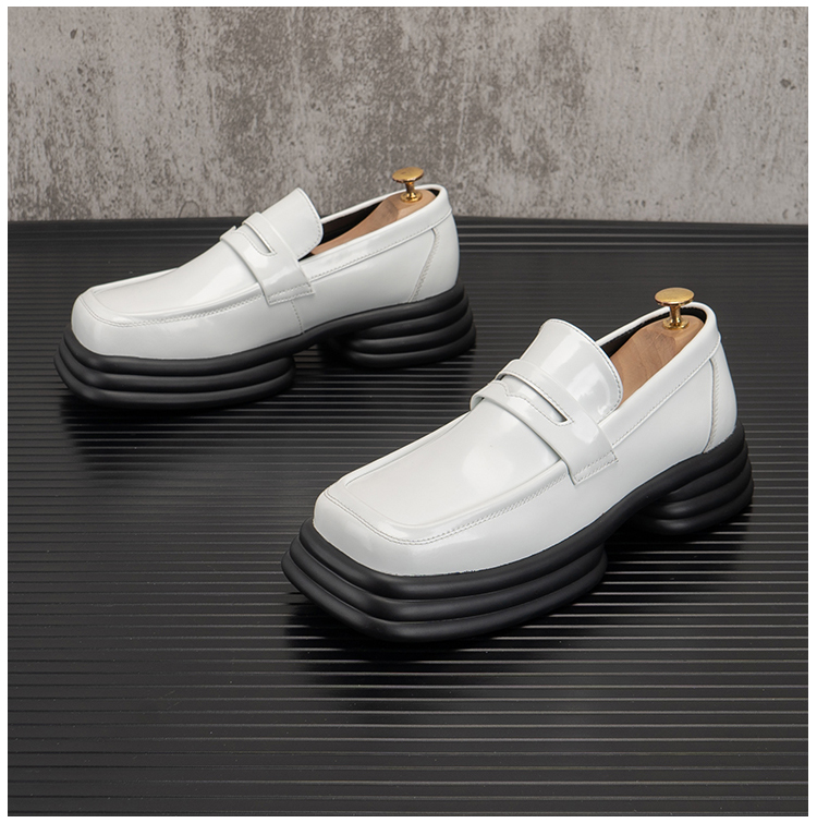 흰색 가죽 신발 남자의 가을 영국 스타일 레트로 스퀘어 발가락 캐주얼 신발 에나멜 가죽 두꺼운 슬립온 로퍼