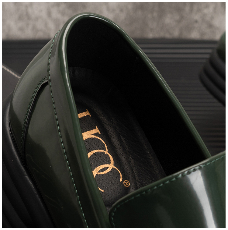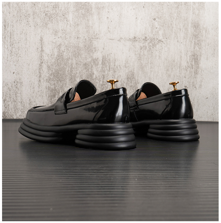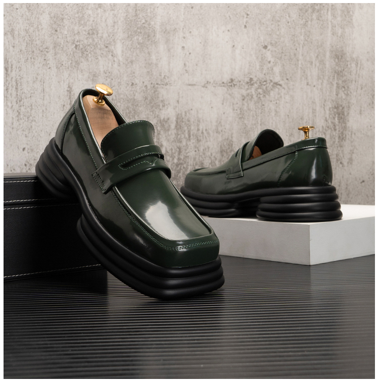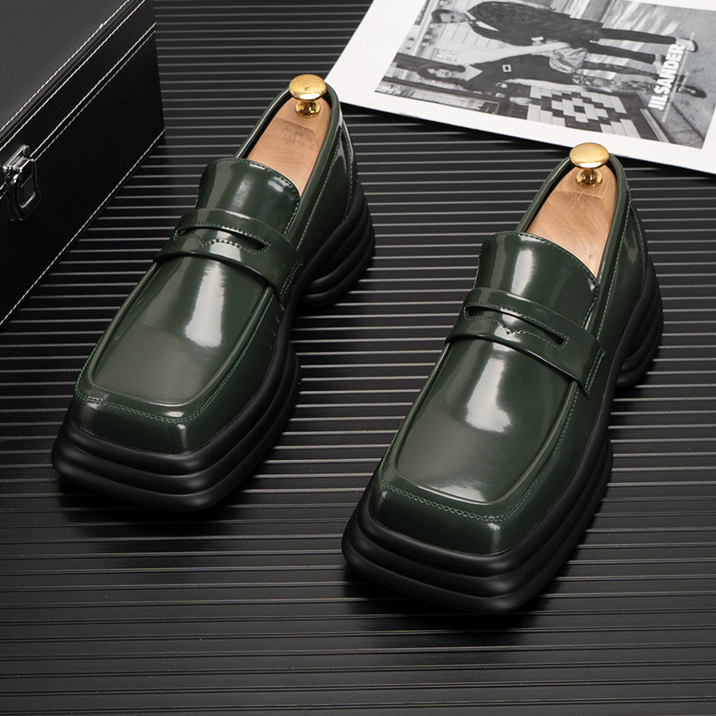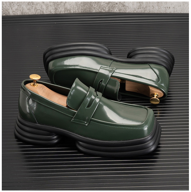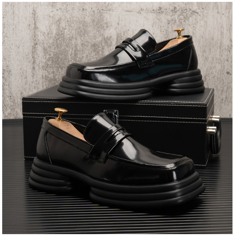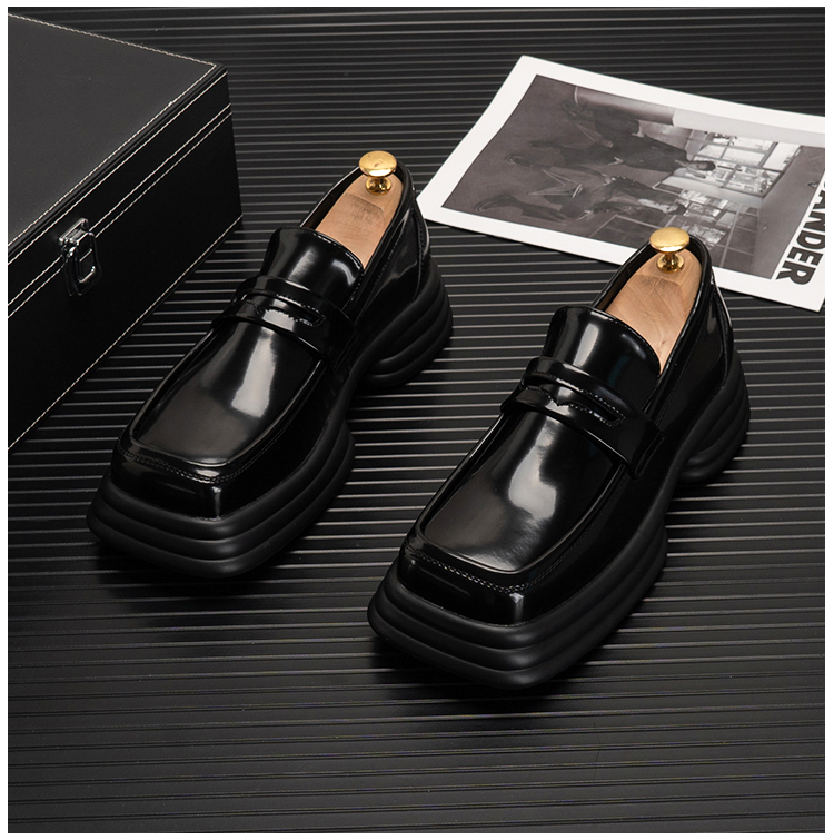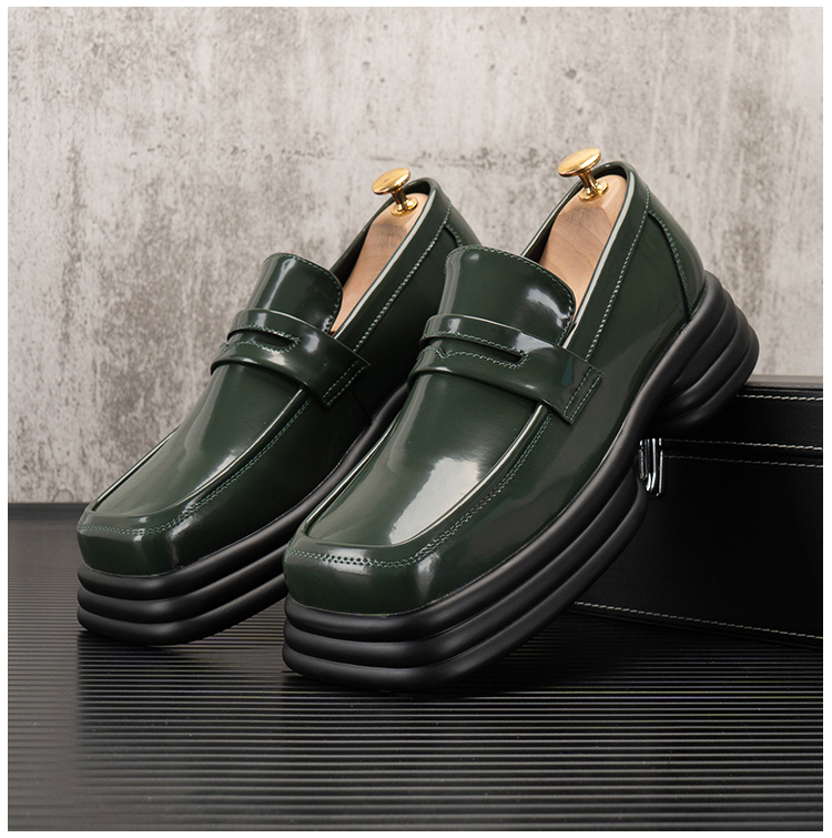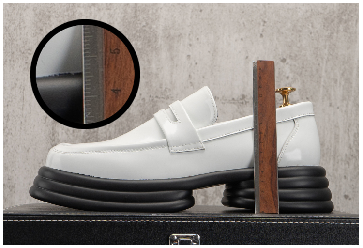 흰색 가죽 신발 남자의 가을 영국 스타일 레트로 스퀘어 발가락 캐주얼 신발 에나멜 가죽 두꺼운 슬립온 로퍼