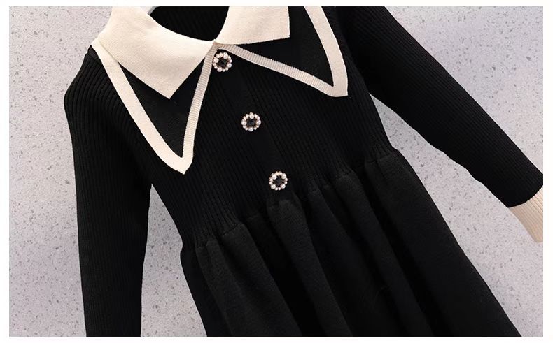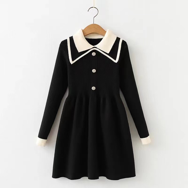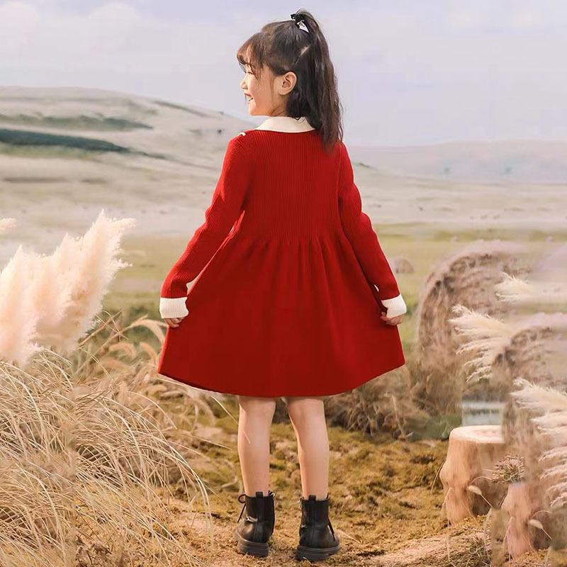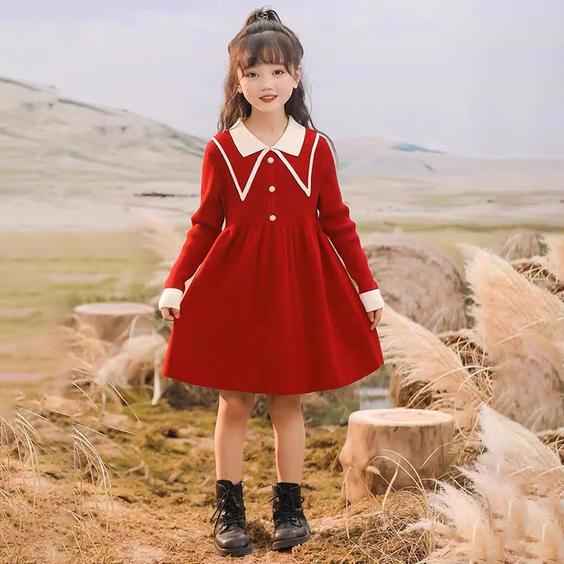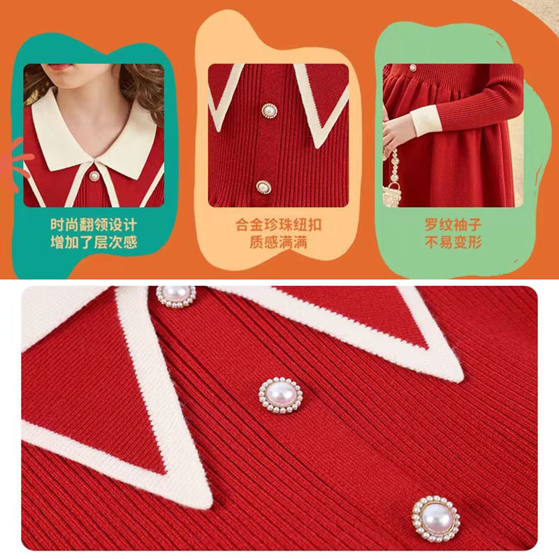 2026 여아 원피스 신상 한국 스타일 패션 모달 레드 라지 카라 단추 장식 세련된 큰아이 원피스스토어 가기
