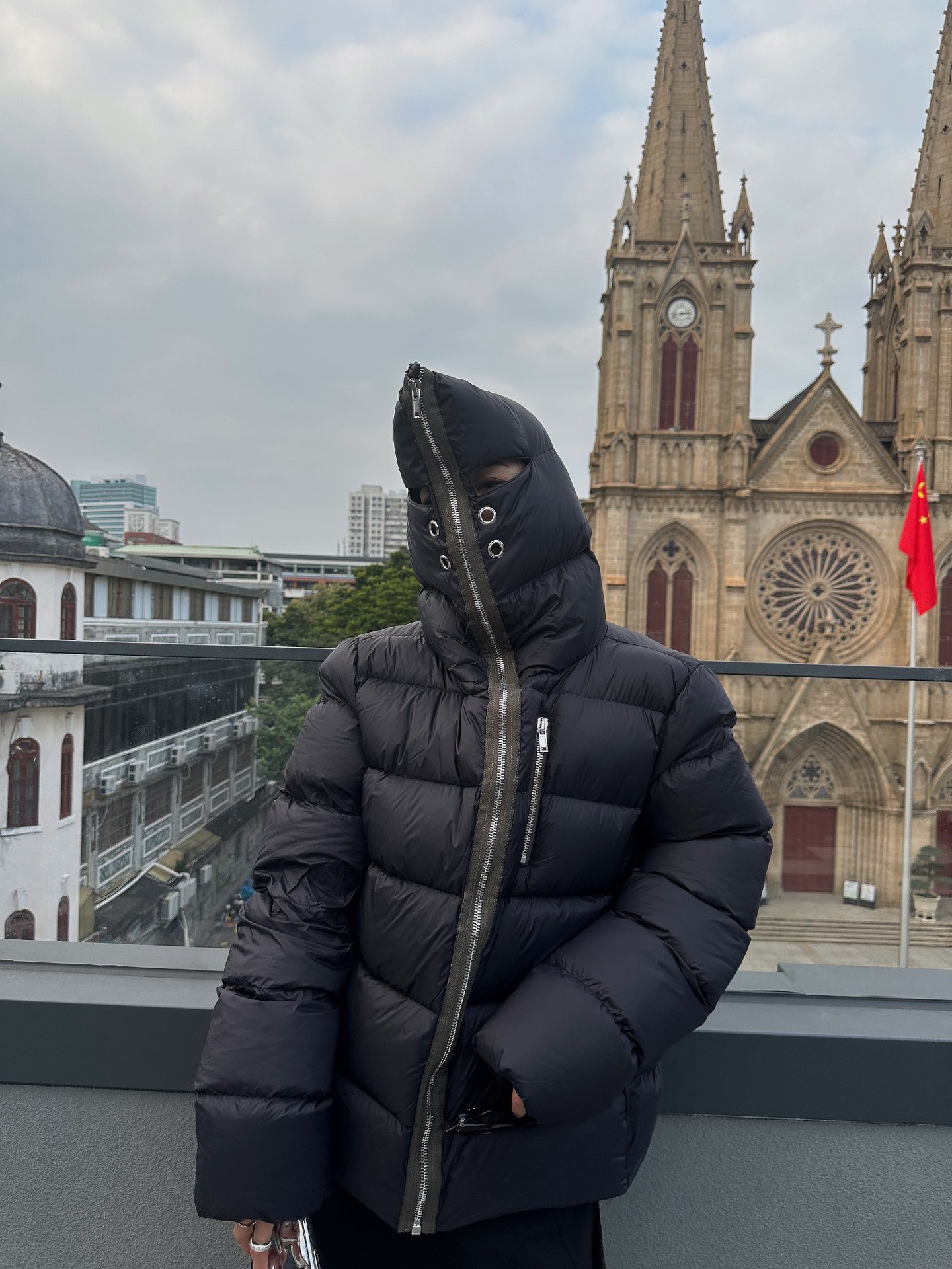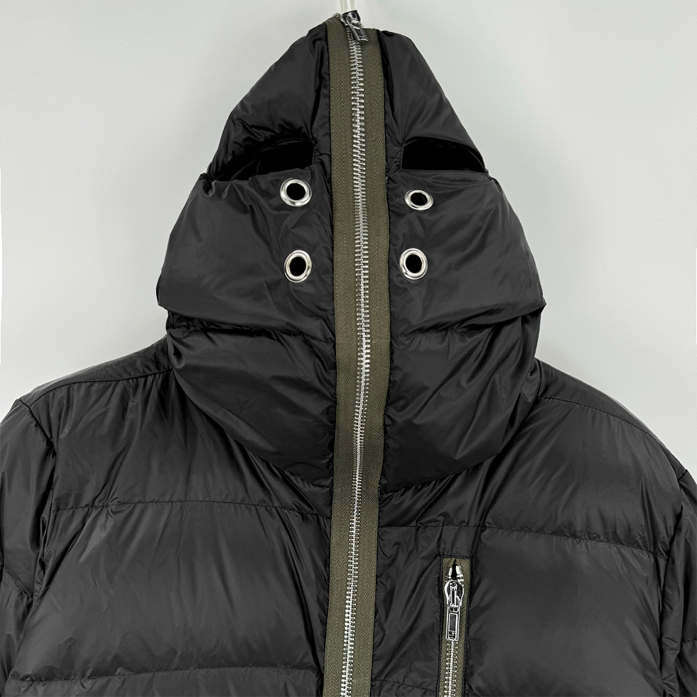 겨울용 남성 다운 재킷, 고급스러운 다크 스타일, 상어 머리가 있는 마스크형 지퍼, 보온성 좋은 일반 다운 재킷